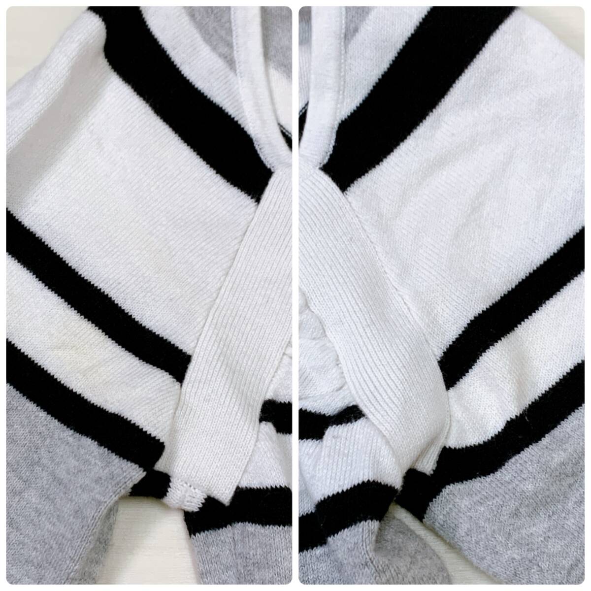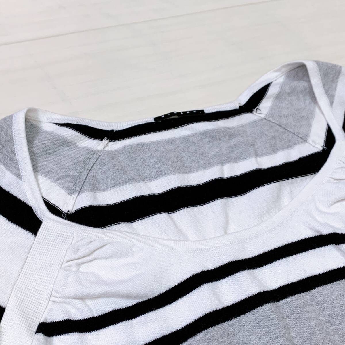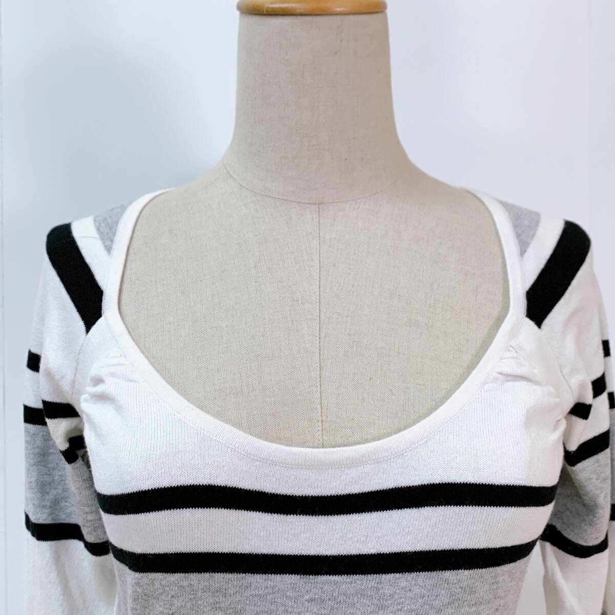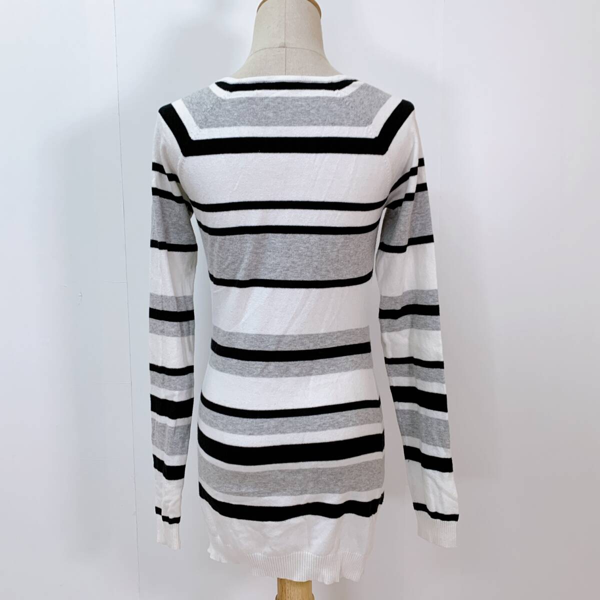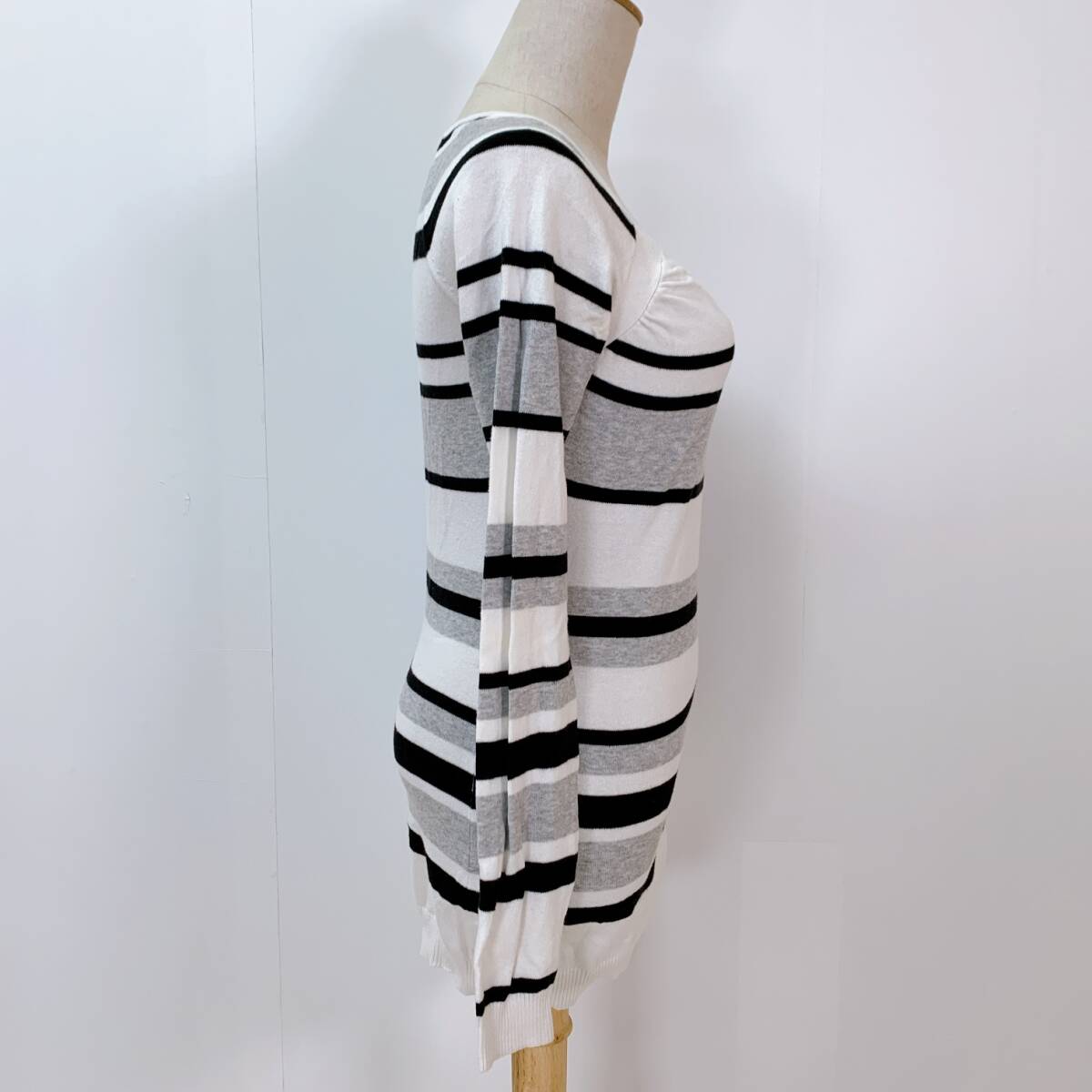 YH0574 SISLEY シスレー レディース ボーダー柄 長袖 カットソー ホワイト ブラック グレー 薄手 カジュアル シンプルコーデ 万能 USED