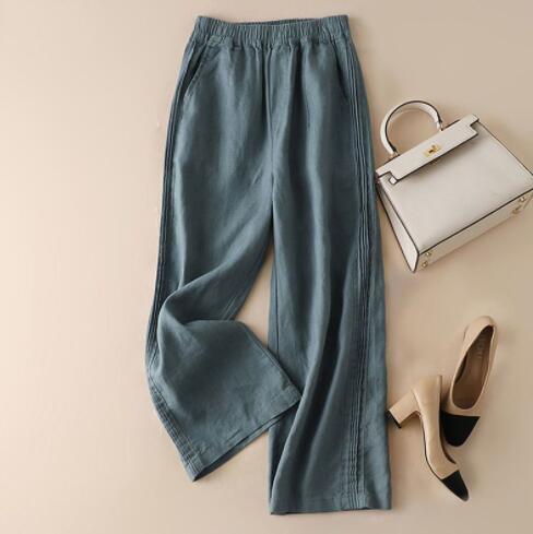 新入荷 ンツカジュアル パンツ 綿麻 ウエストゴム ゆったり 無地 サルエルパンツ 素敵な 簡素 ワイドパンツブルーLサイズ選択可