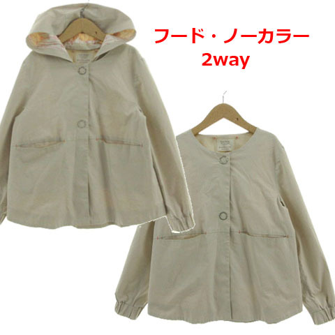 ザラ ZARA ジャケット フード ノーカラー 2way コットン混 ベージュ 13/14 164 キッズ