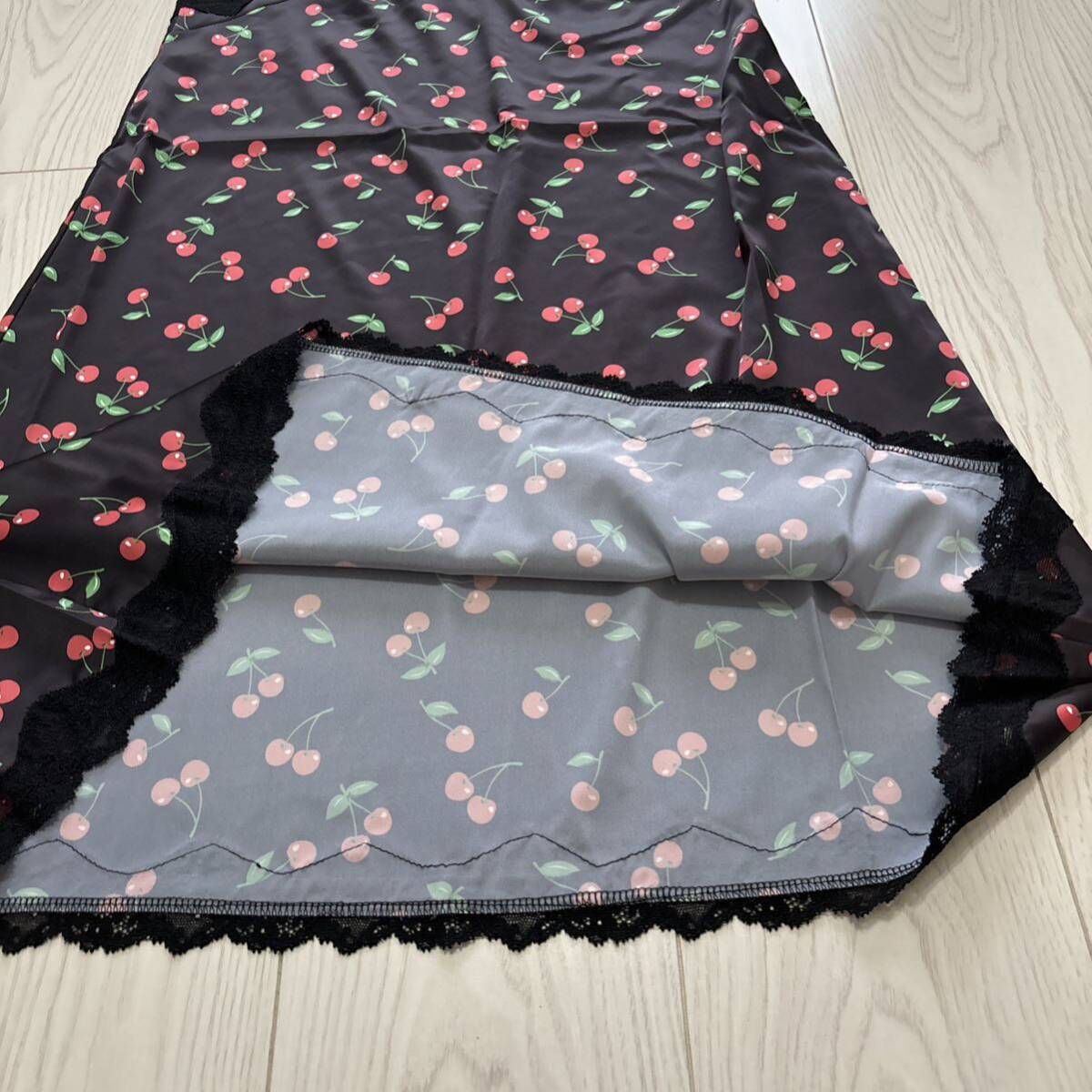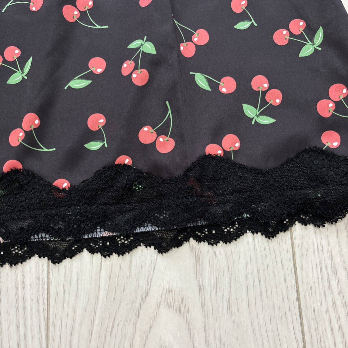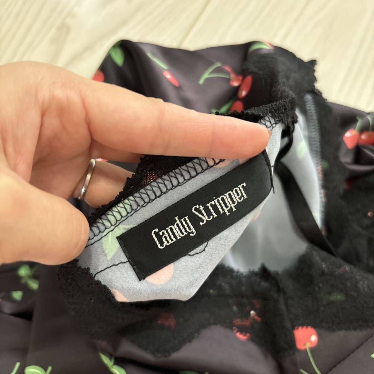 未使用●キャンディストリッパー Candy Stripper チェリー 柄 キャミソール/レース/トップス/さくらんぼ/サクランボ/黒/キャミ ★1429-4