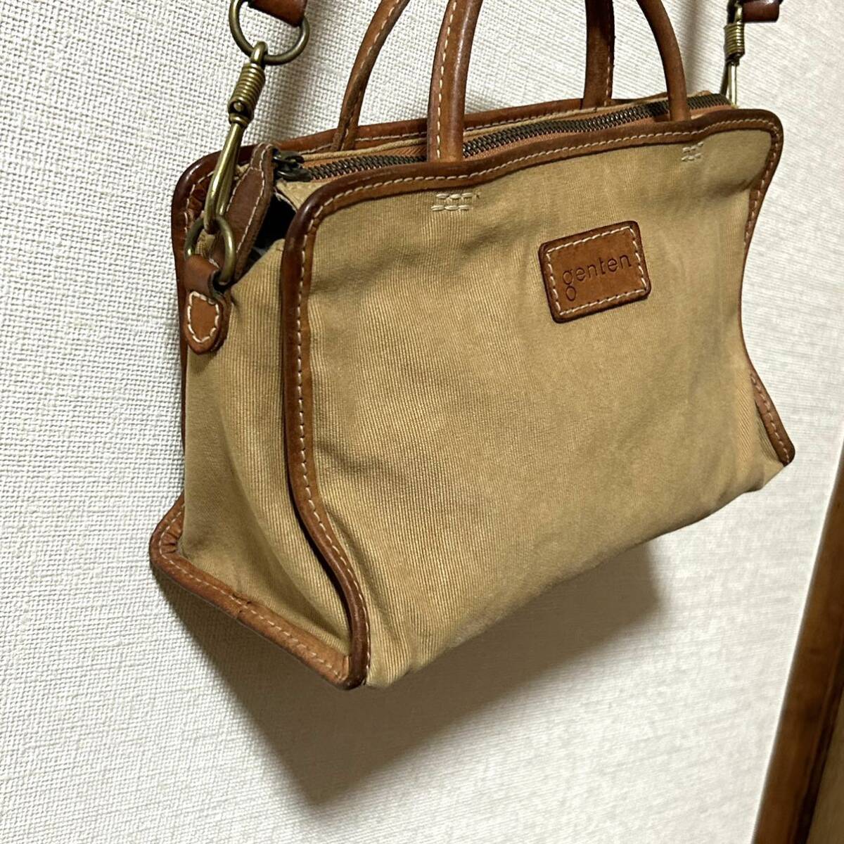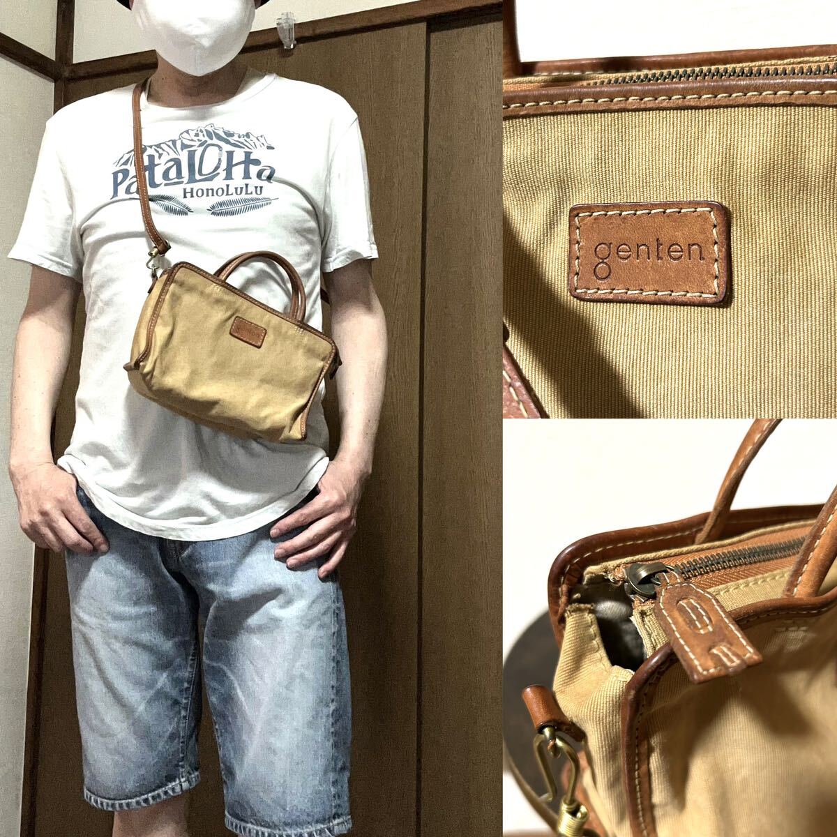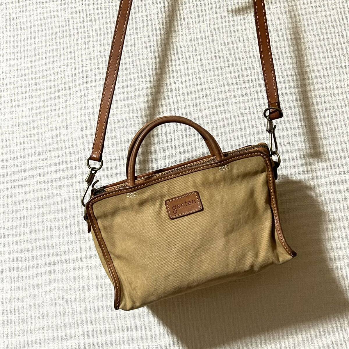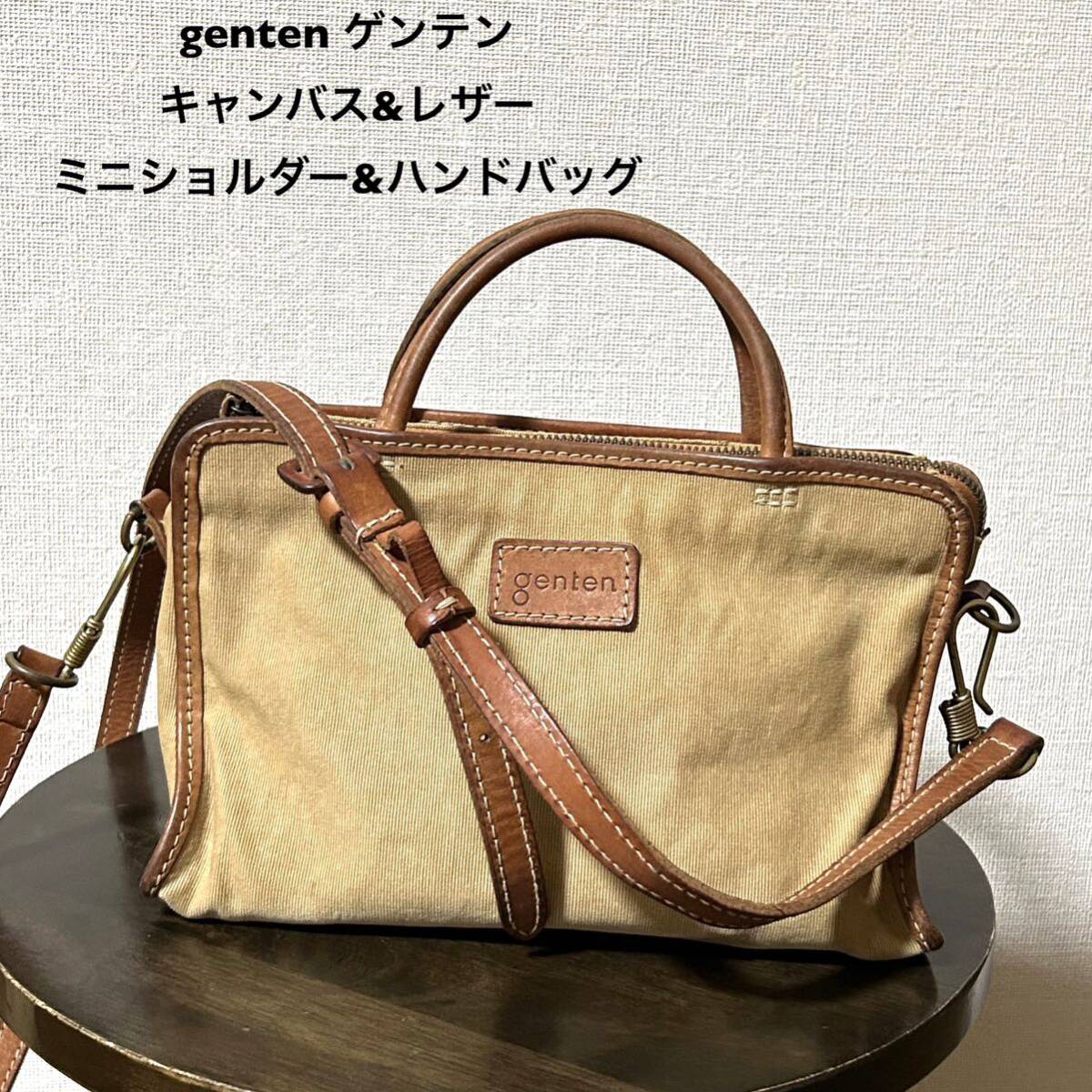 genten ゲンテン 中古古着キャンバス&レザーミニショルダーバッグ ハンドバッグ