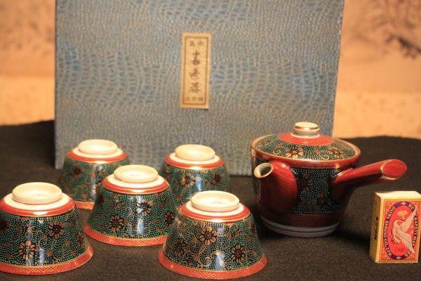 格安スタート、売り切りにて出品いたします。 ◎状態:カケ(1客)、スレ、汚れ等あります。長期保管されていた古い商品です。その他、写真でご確認ください。 ◎大きさ(約.センチ):(急須)幅14.0 高8.2 (茶碗)径9.0 高5.0 |