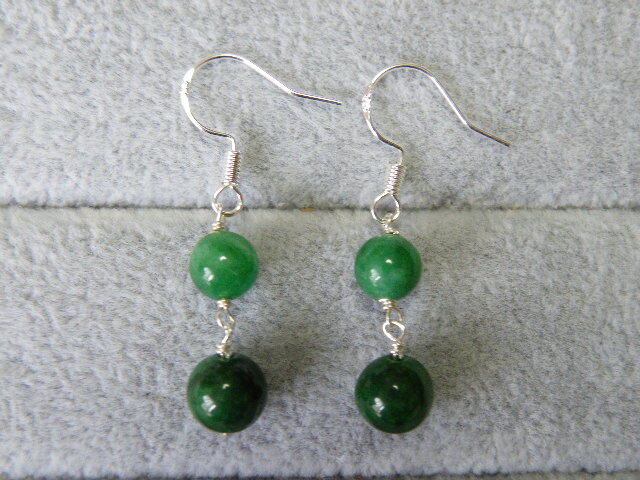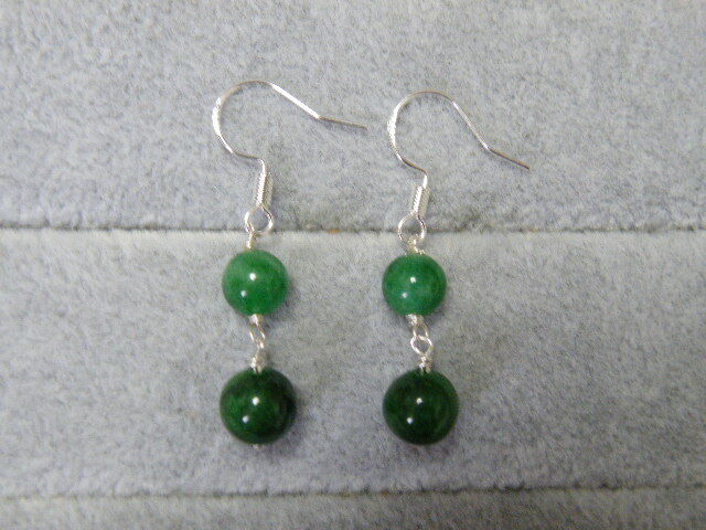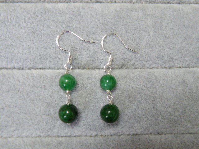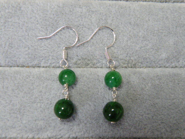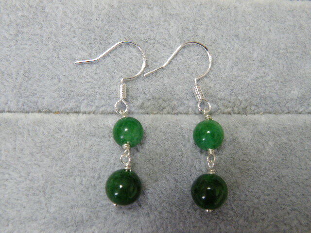 R00046.グリーンカラーストン シルバー925 ハンドメイド ロングピアス