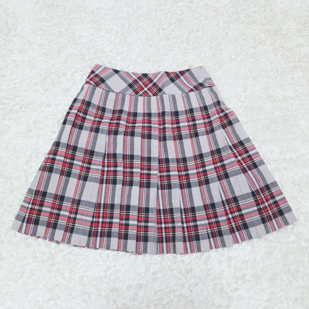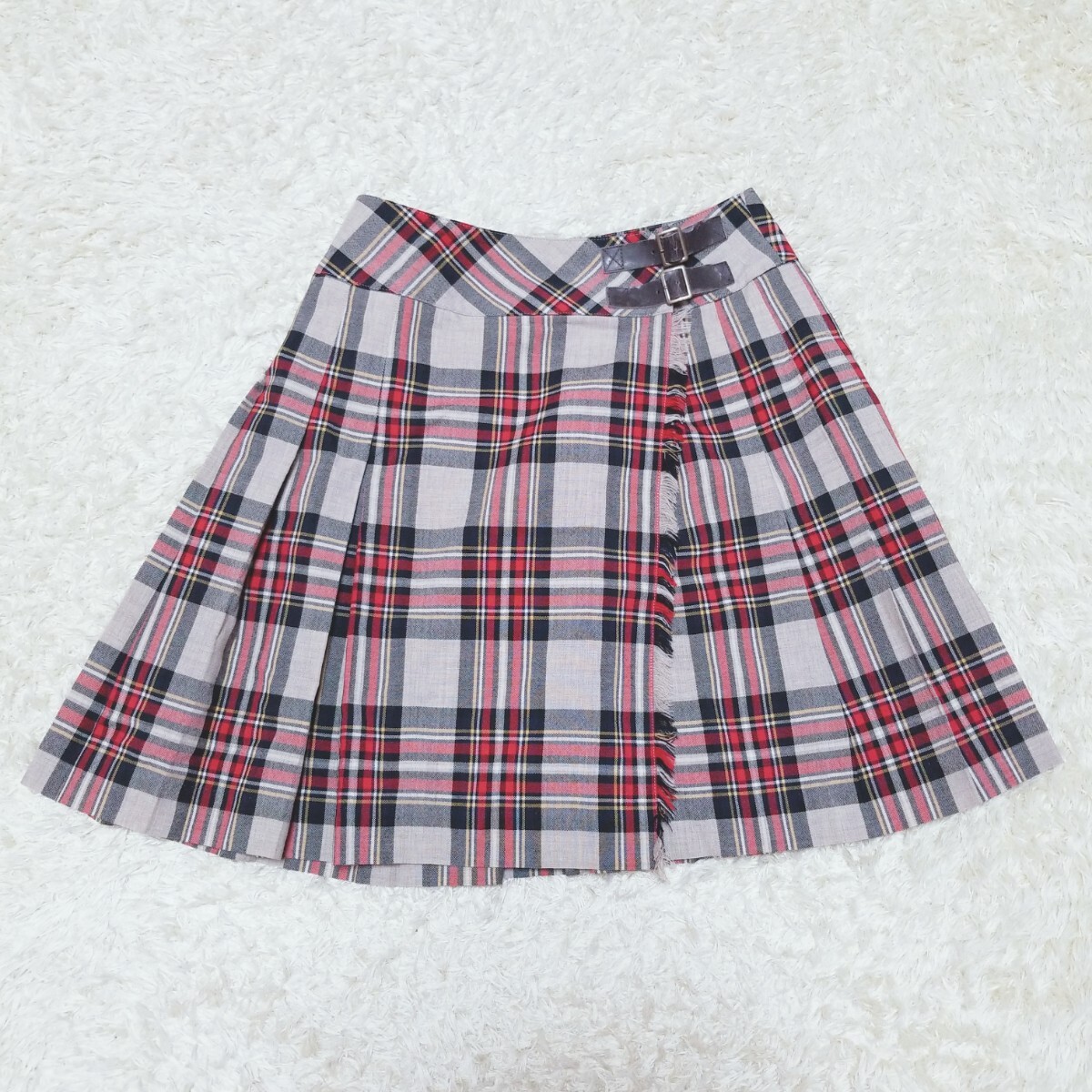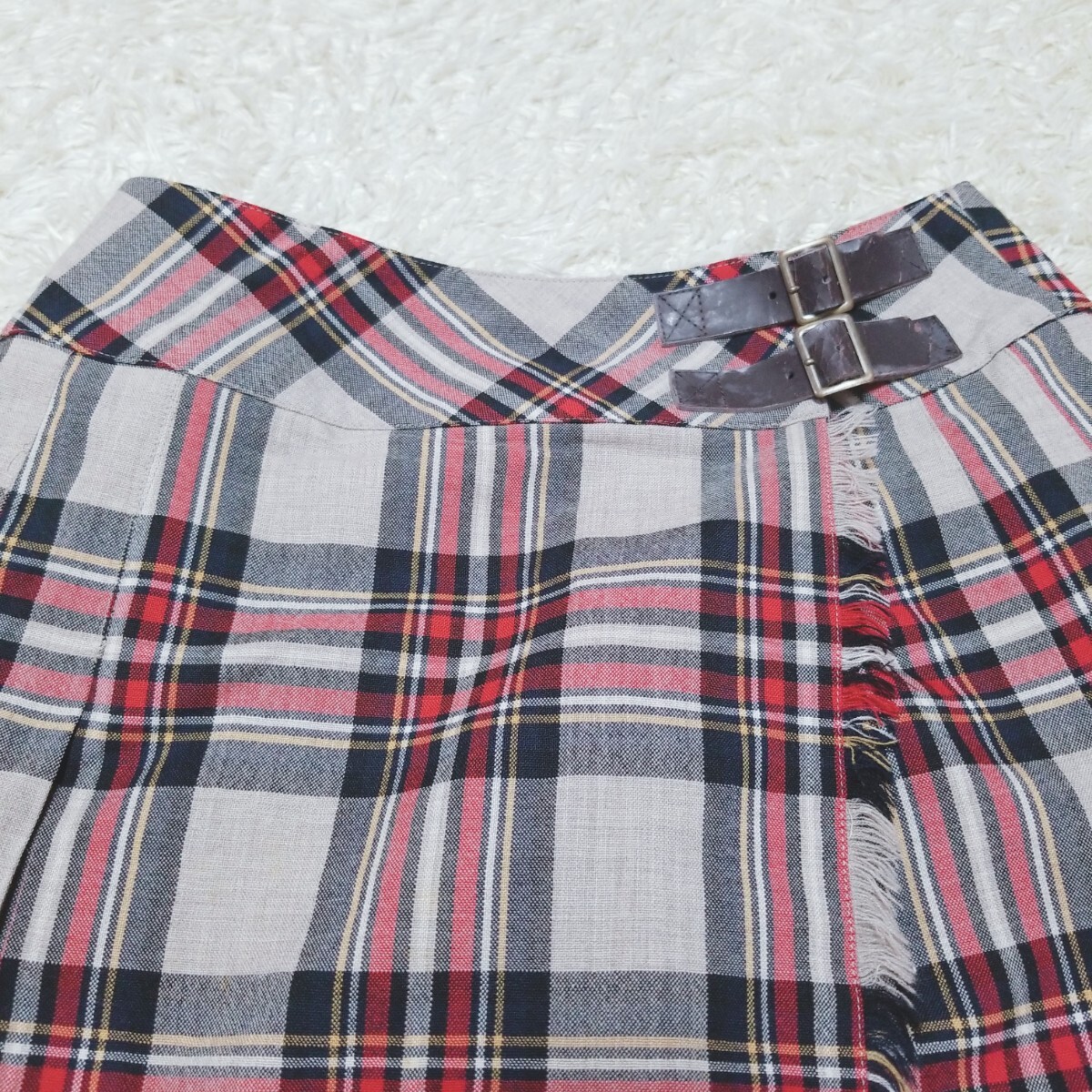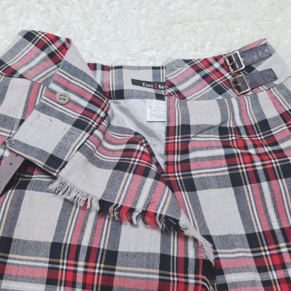 送料無料★Y1575 EAST BOY イーストボーイ ウール100% ラップ風 プリーツスカート ミニ丈 レディース 9 M ベージュ系 チェック柄 かわいい