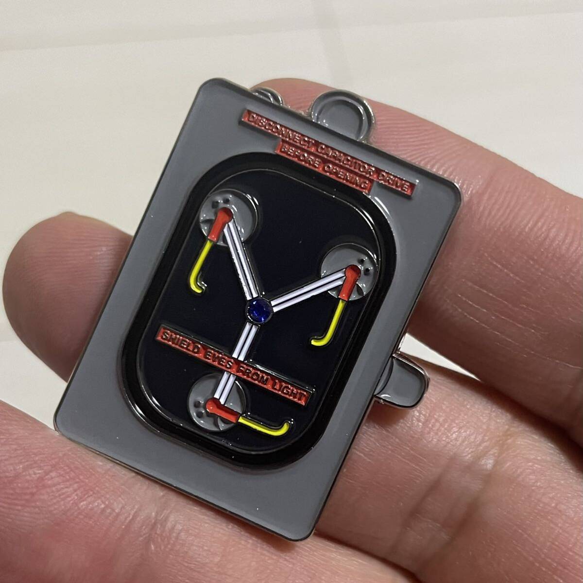 映画バックトゥザフューチャーの『次元転移装置』をデザインしたお洒落なピンバッジです。