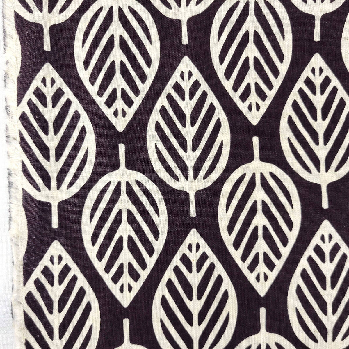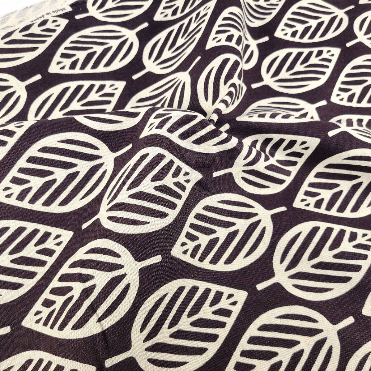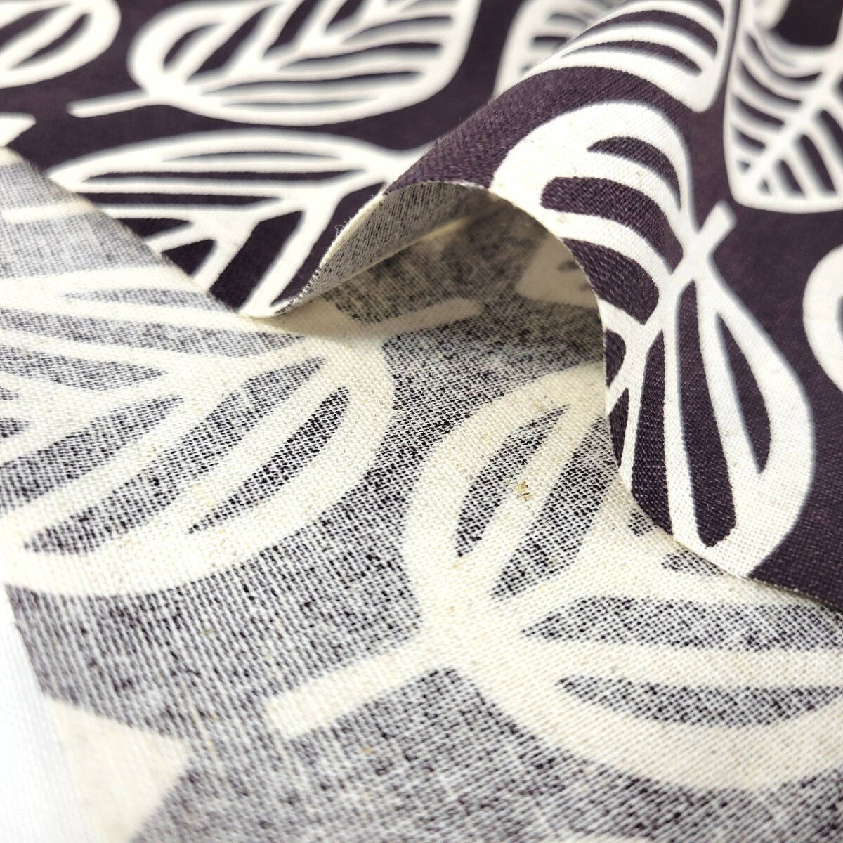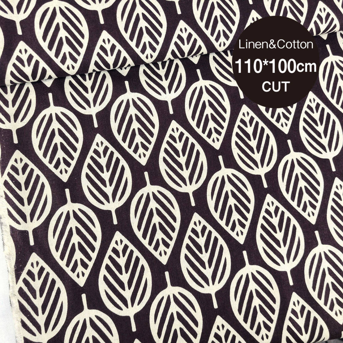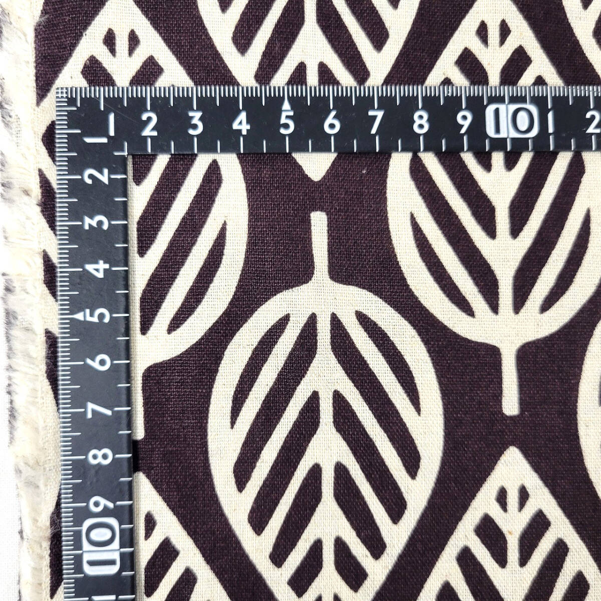 北欧風リーフ柄 綿麻キャンバス生地 #ブラウン 幅110*100㎝