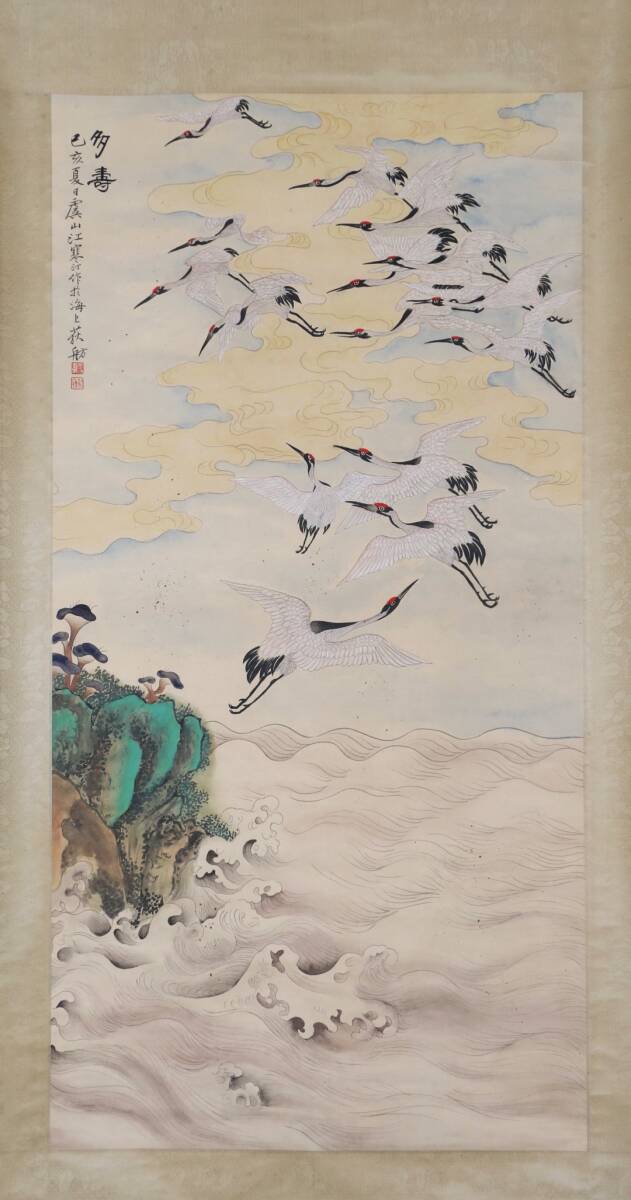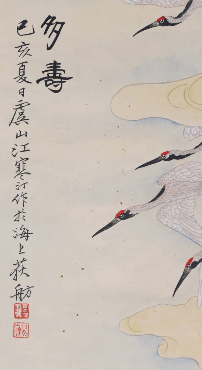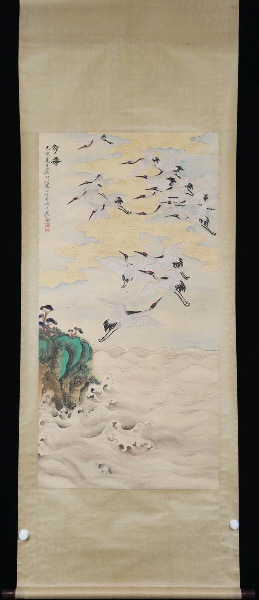 中国書画 掛け軸 中国・近現代 江寒汀書 「多寿図」 紙本立軸 書道巻物 真筆逸品 肉筆保証 唐物古画 LOT-2480 | |||