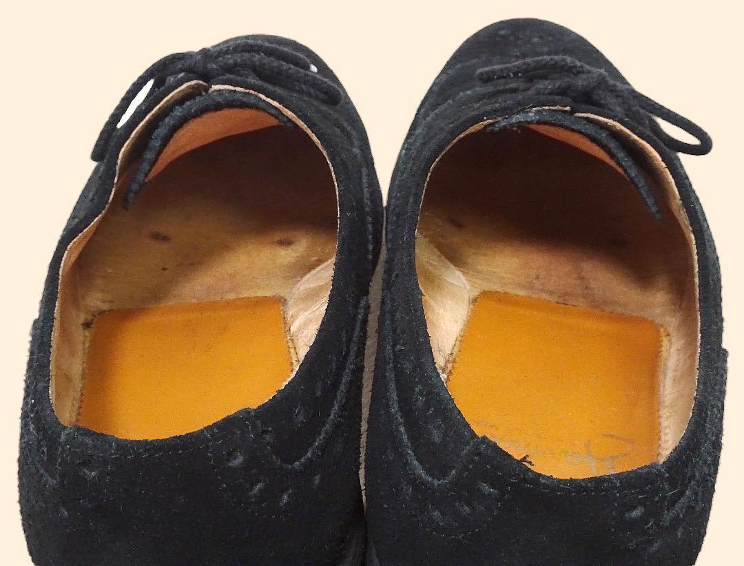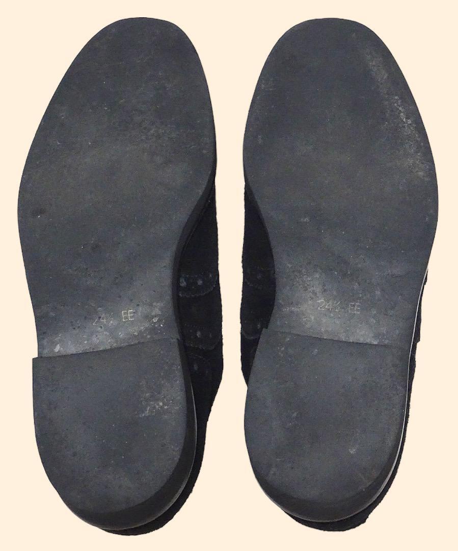 ・靴底、特に靴底中央部分は少しキズがあるのを確認。ですが内側(足を入れる側)まで貫通している様な形跡もありませんので、ごく一般的なキズだと思われます。