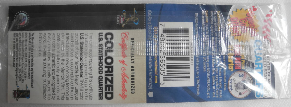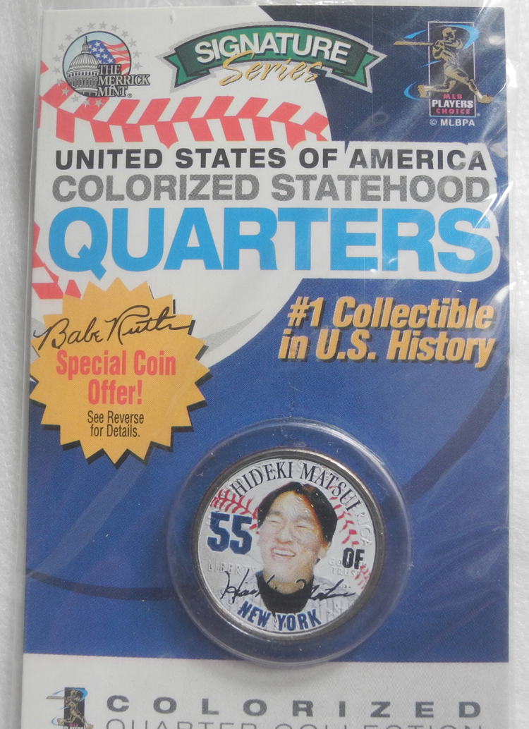 レア! アメリカ 1/4ドル硬貨 松井秀喜 Matsui 限定カラーコイン NYヤンキース 大リーグ USA 証明書付き 新品レア! クォーターダラー