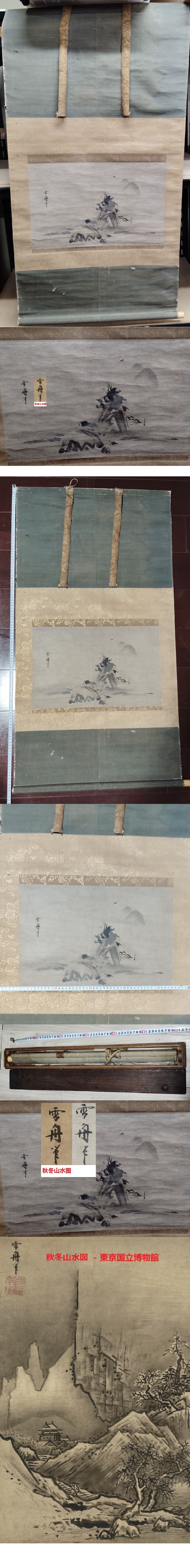 室町時代の画僧 雪舟 真筆 紙本水墨 真山水図 箱入