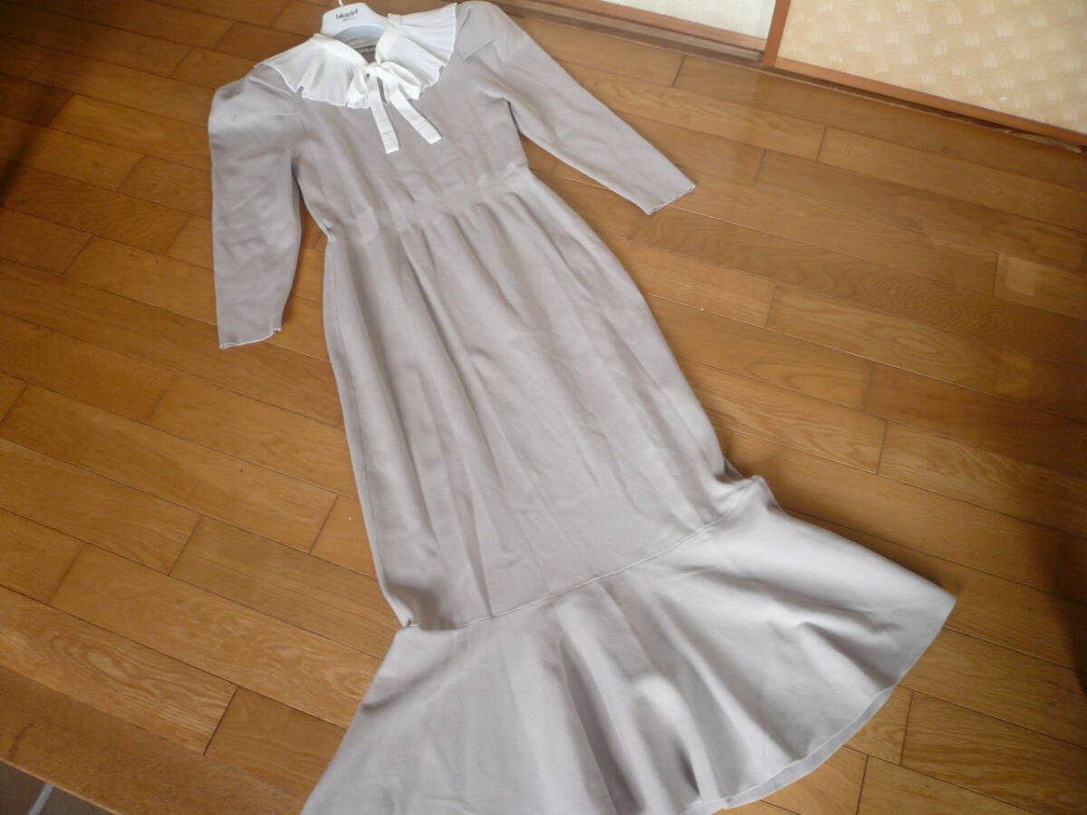 SNIDELスナイデル*②ニットワンピース*ベージュ*プリーツカラー