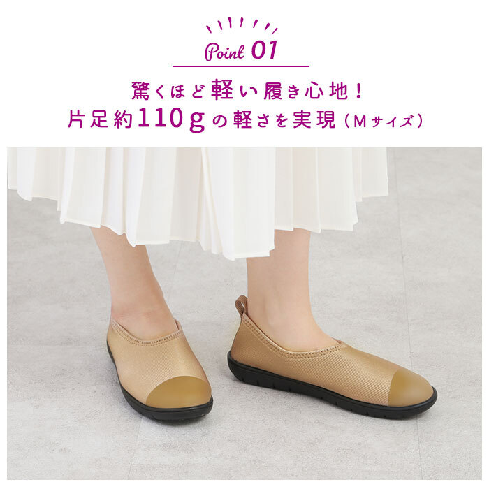 商品説明 | ・驚くほど軽い履き心地!しなやかな柔らかさ!軽量化+屈曲性にこだわったソフト設計のシューズ。安心の日本製で品質も◎ ・アッパーは足に自然にフィットするリブストレッチ素材・高反発のウレタン・裏地の3層構造。締め付け感も少なく楽ちん&リラックス。型崩れもしにくい。 ・クッション性抜群の高反発ウレタン素材のソフトインソールで足裏も負担が少ない。 ・軽量感、屈曲性にこだわったEVAコンプレッションソールで、片足約110gの軽さを実現(Mサイズ)。 ・普段履きにはもちろん、長時間の立ち仕事や動き回る方にも重宝。 | |||||||||||||