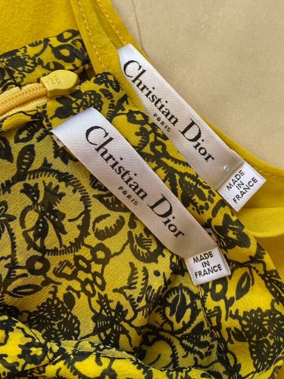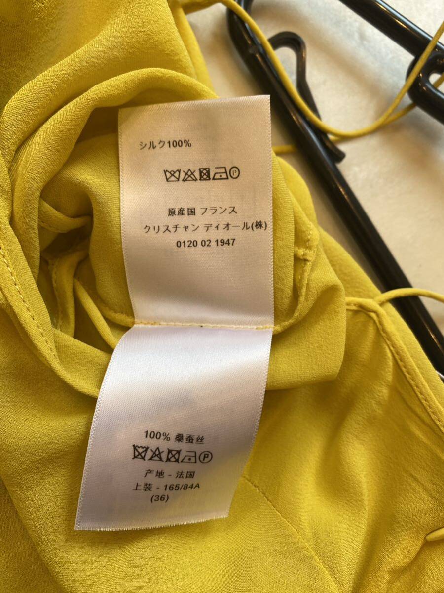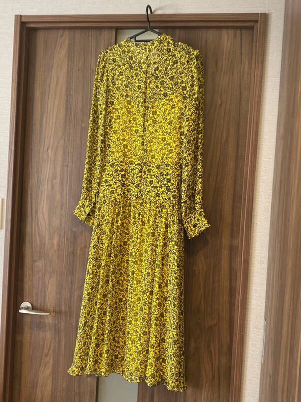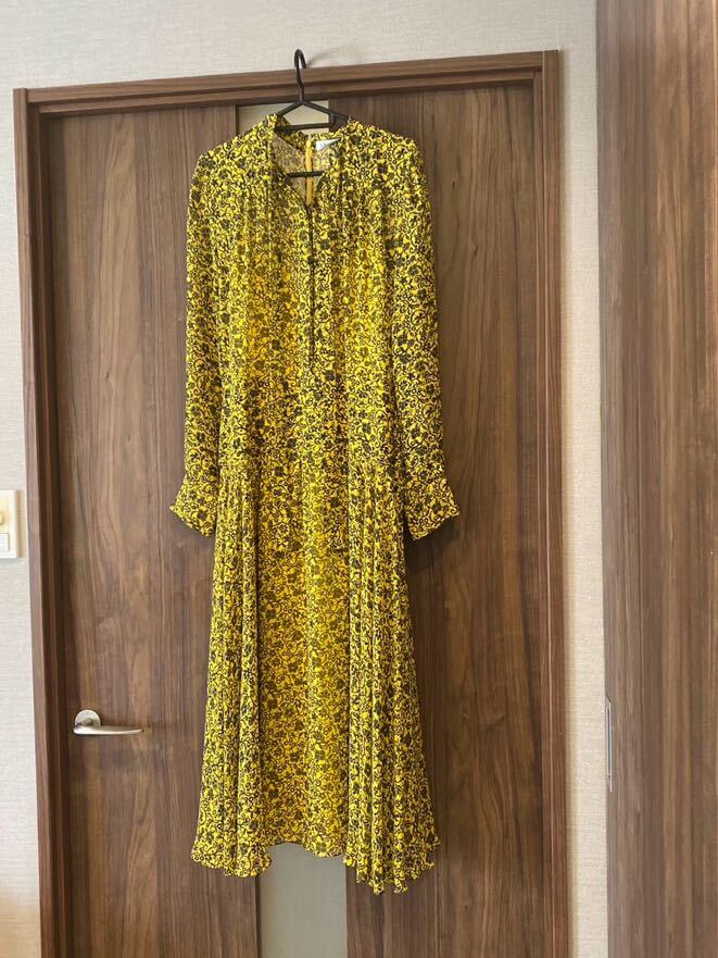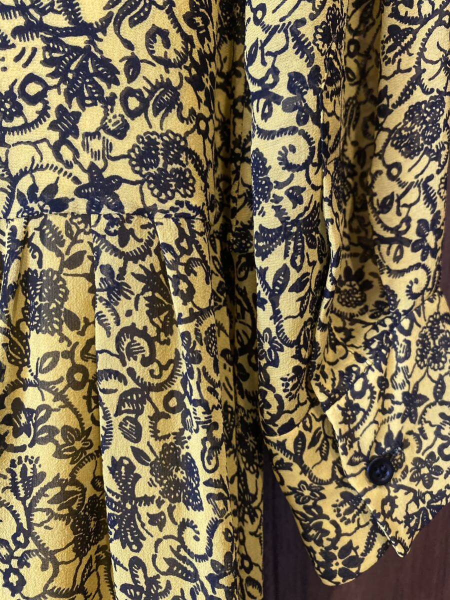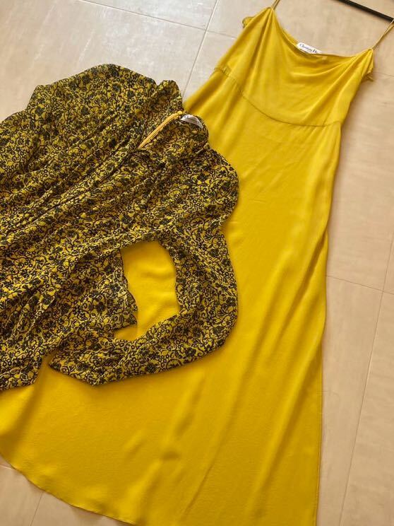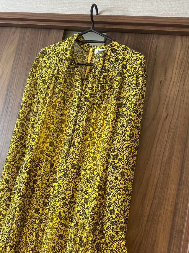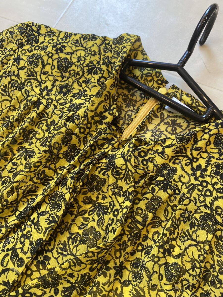 黄色い花柄の透ける素材のワンピースです。インナーつき。内タグがないためなため素材が分かりませんが、インナーのほうはタグつきでシルクですのでシルクと思います。