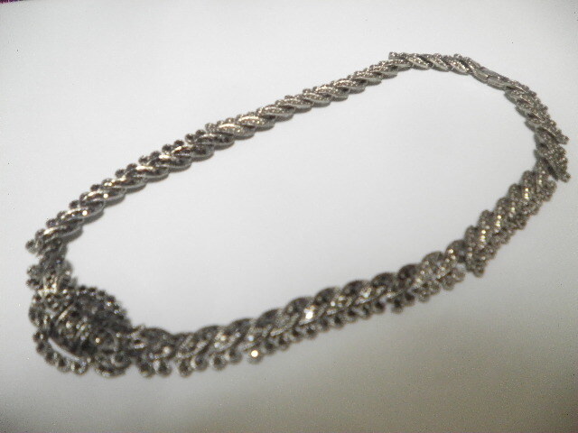 【SALEセール】☆処分品/未使用品☆下げ札なしです!!(モニター環境により色が写真と少し異なる場合があります) ☆サイズ 長さ 約 42cm +(留め具含む) 幅 約 1、1~2、3cm (測る場所により多少の誤差が生じます) ☆素材 マーカサイト☆保証書、ケース等の付属品はありません ☆処分品のため 素材の性質上、色味の違いや傷、欠け、内包物によるくすみ、糸の劣化等がございますのでご了承下さい。 ご理解の上、入札をお願い致します。 |