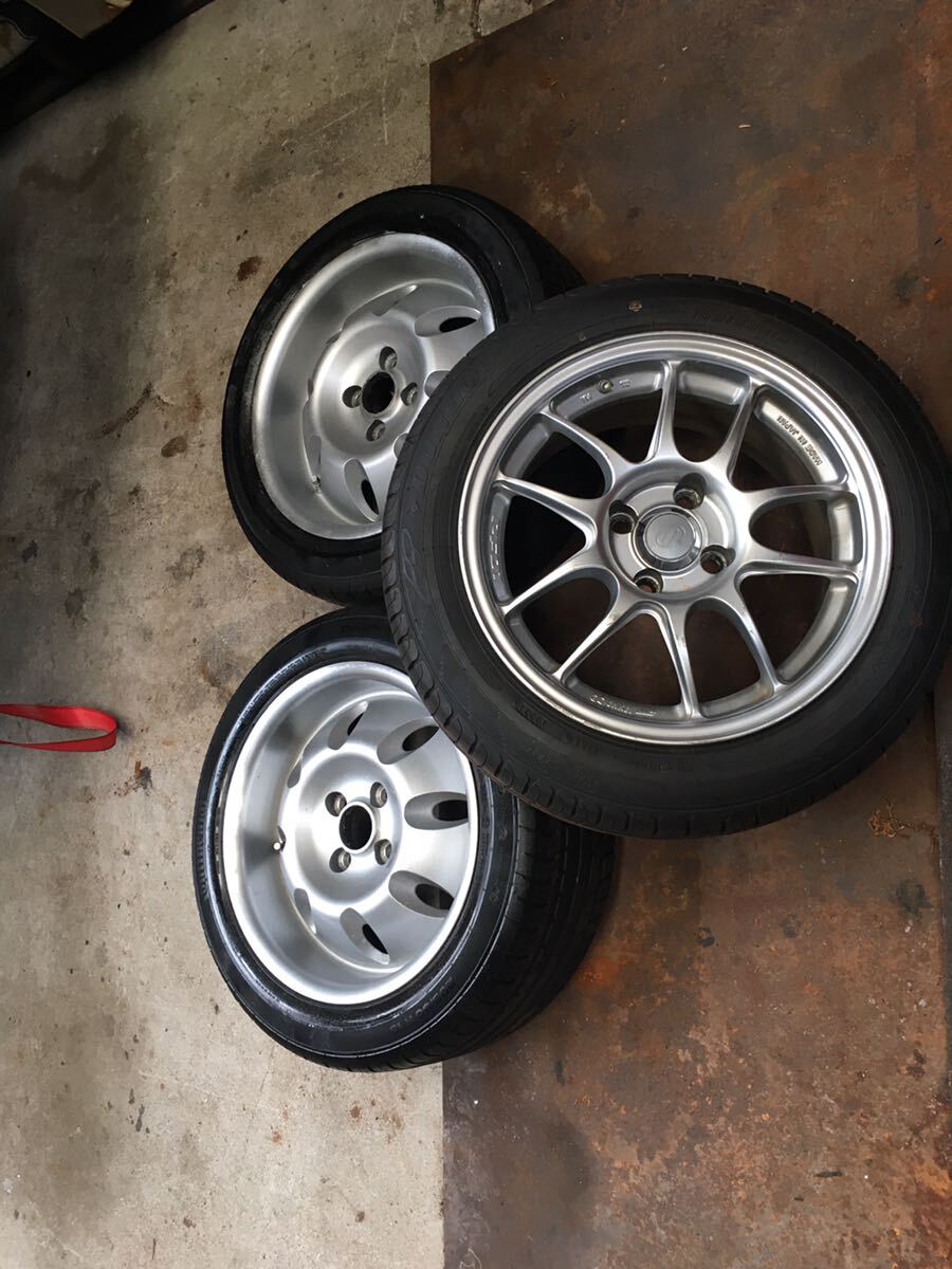 水上バイク運搬トレーラーに使っておりました。メイン2本と予備1本の出品になります。メインホイールは、ミッキートンプソンに似ており、カッコ良く目立ちます。