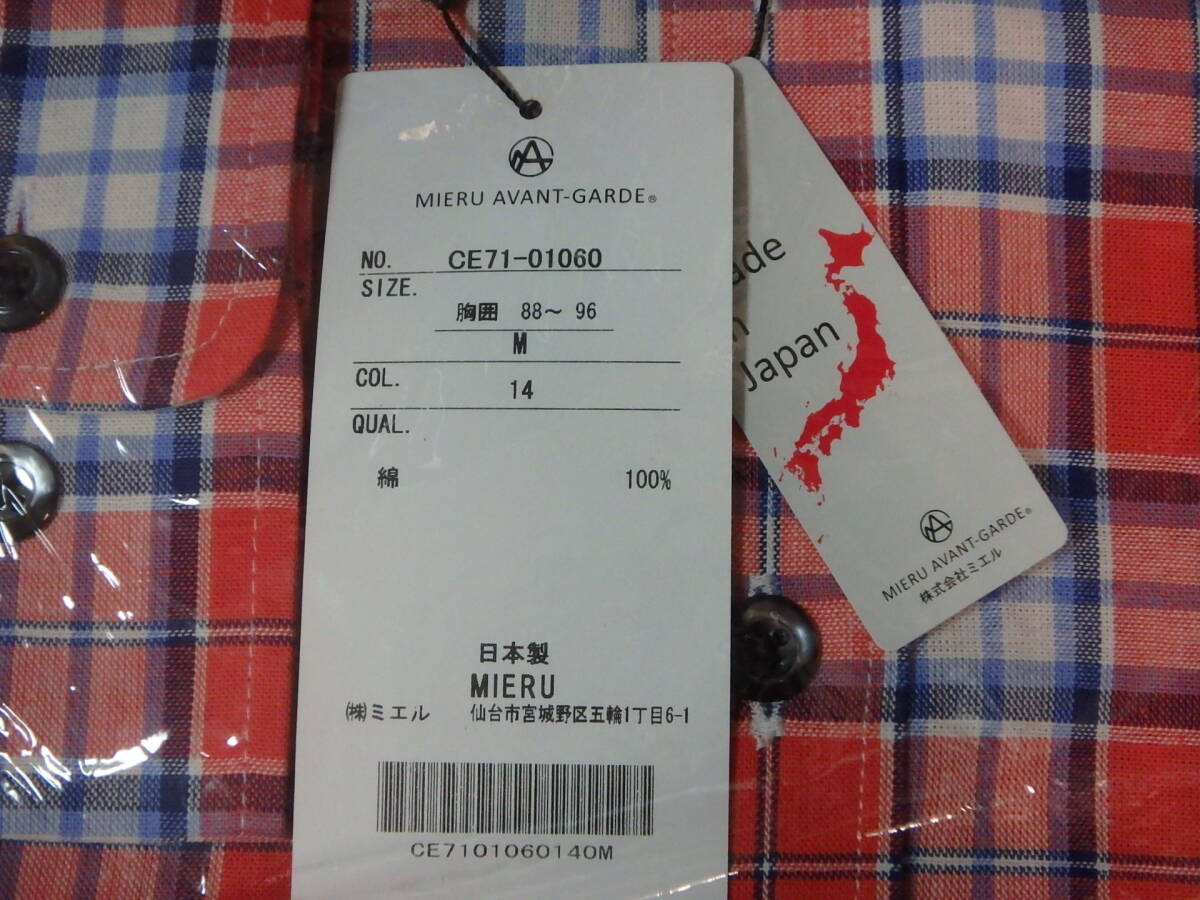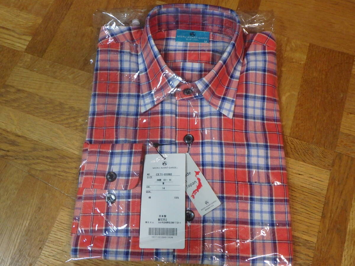 ★MIERU ミエル〓先染チェック長袖シャツ〓M 未使用 定価15,400円 日本製 赤