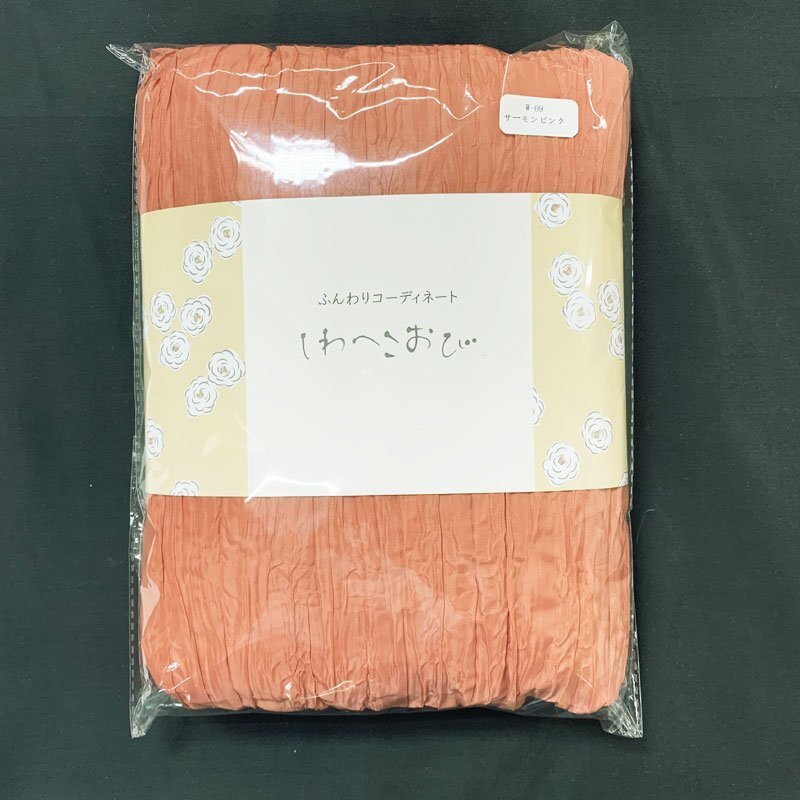 コメント | くしゅくしゅっとしたシワ加工が可愛らしい「しわ兵児帯」です。 新品未使用品で特筆すべきダメージはありません。 簡単な帯結びでふんわりとしたボリュームが可愛らしく、普段着はもちろん、浴衣やアンティークとの相性抜群!レースリボンや帯留、コサージュなどをつけたり、自分流のコーディネイトを楽しめます! |
