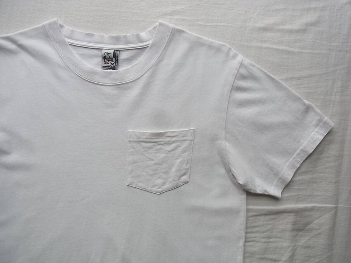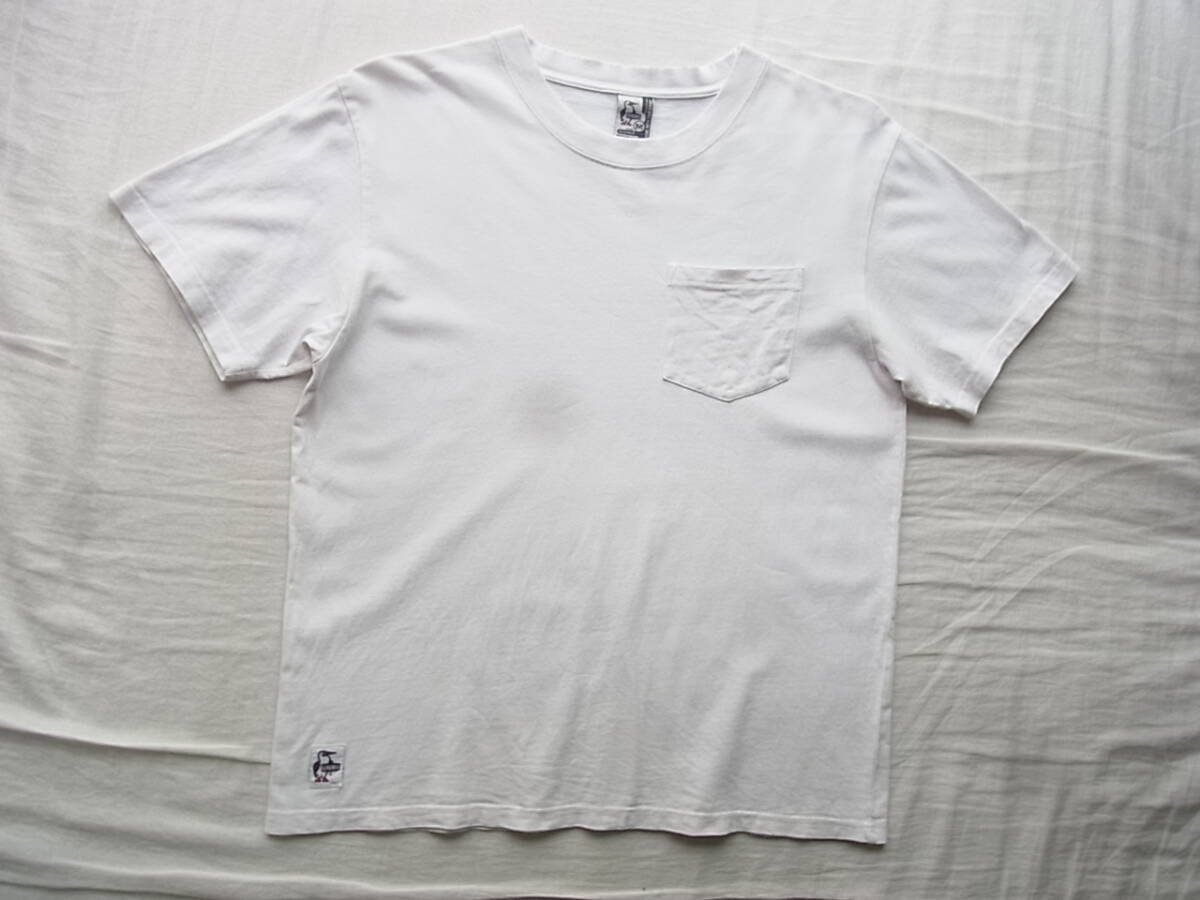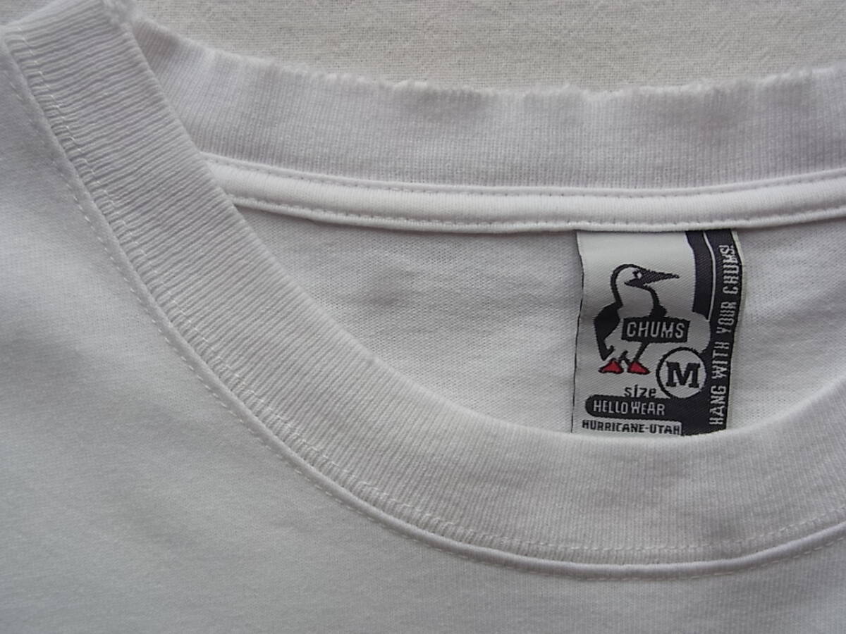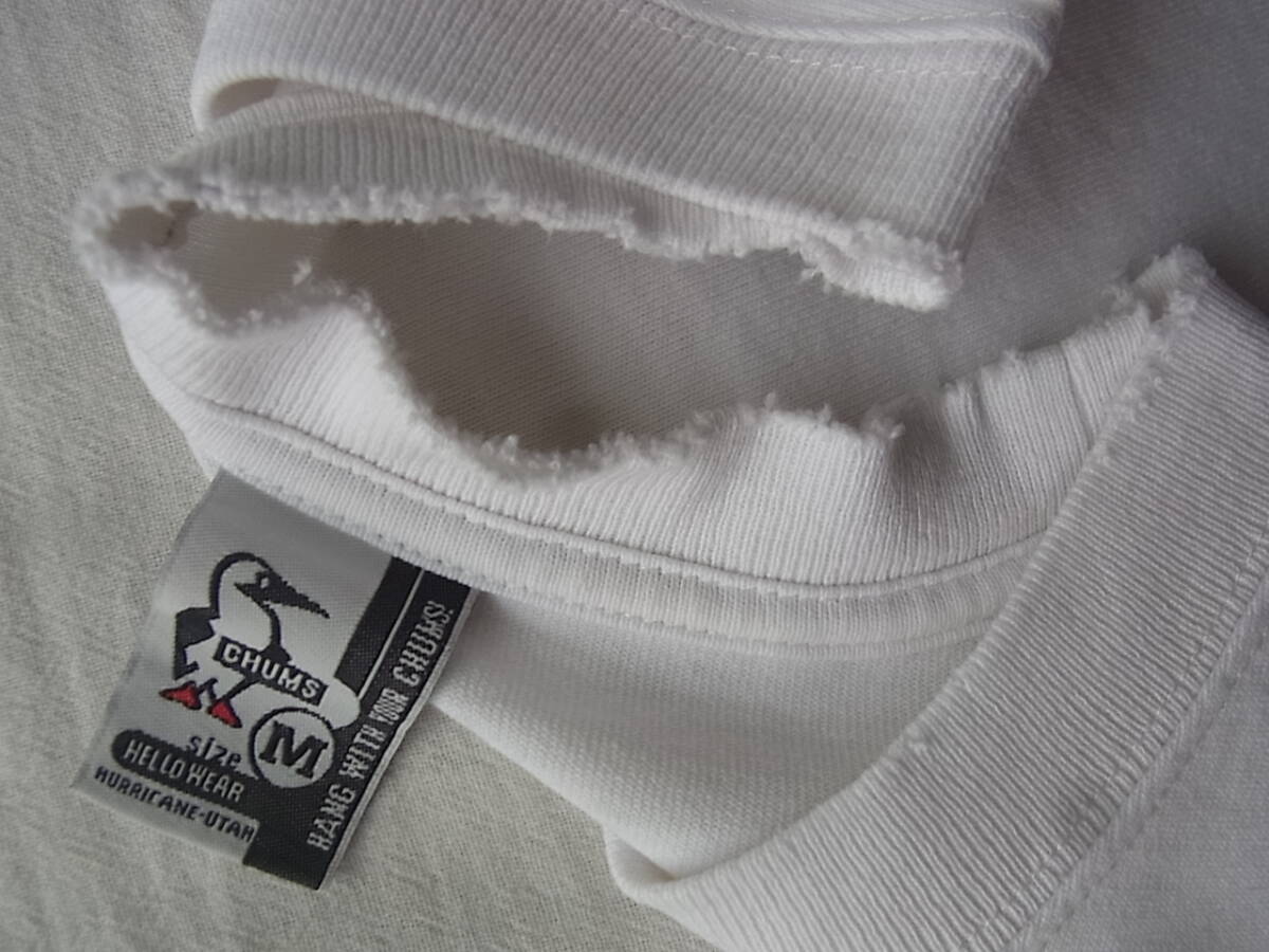 CHUMS チャムス ポケット付き 衿リブダメージ加工 ホワイト無地Tシャツ サイズ M