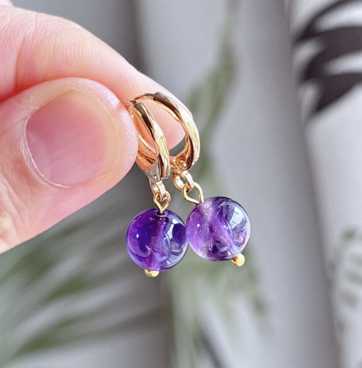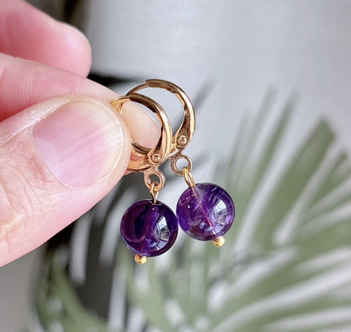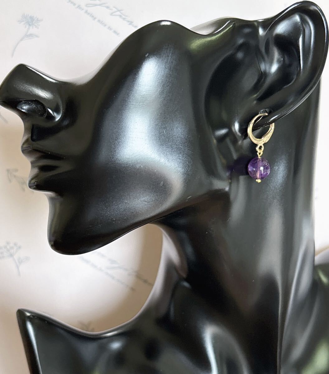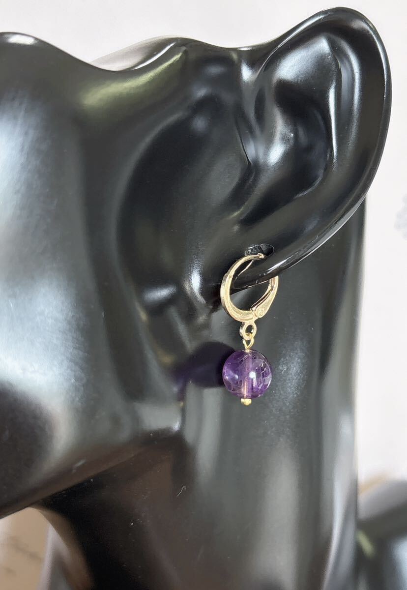 天然石 アメジスト(紫水晶)ピアスのサイズ約:直径8.8mm;