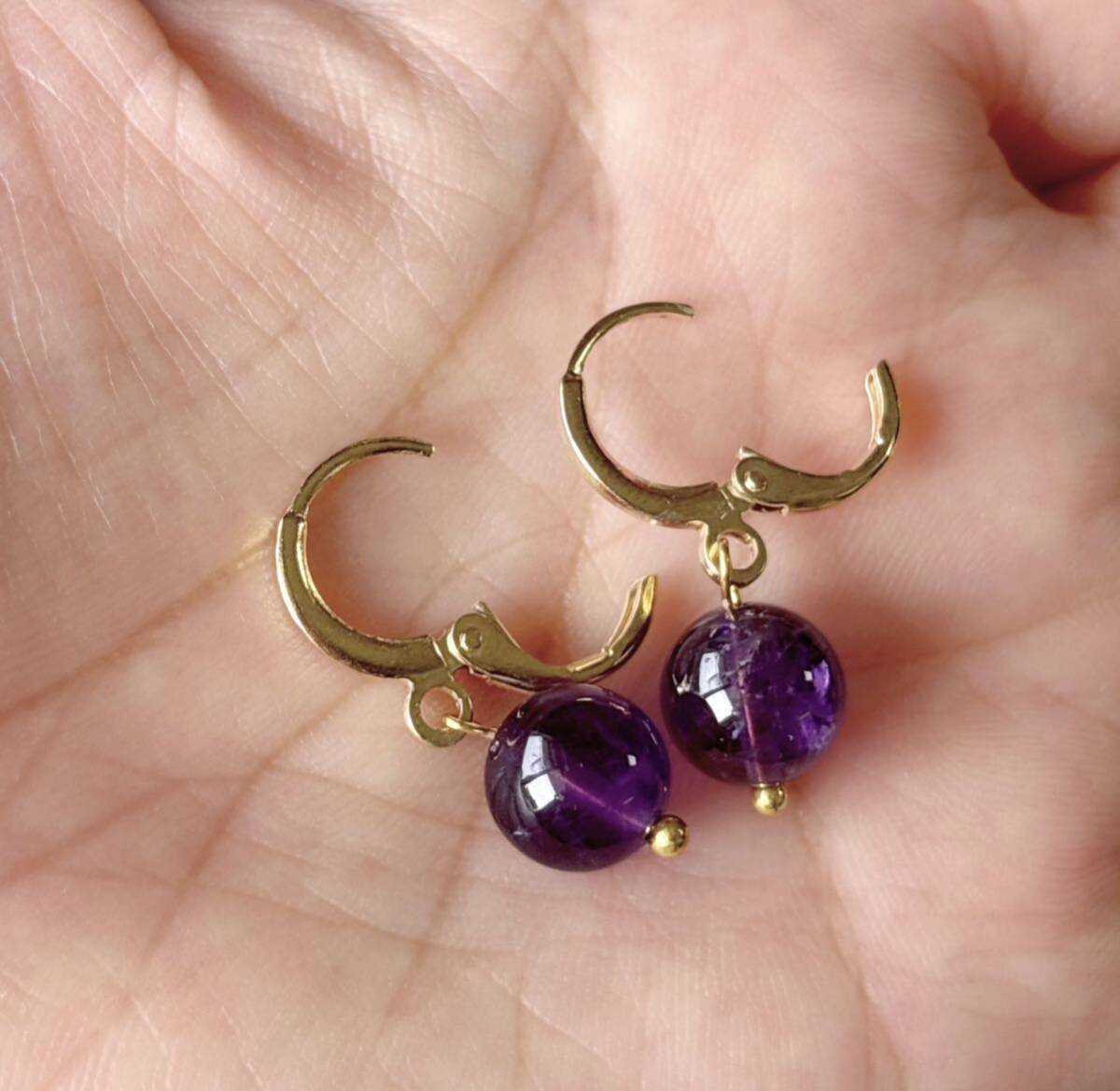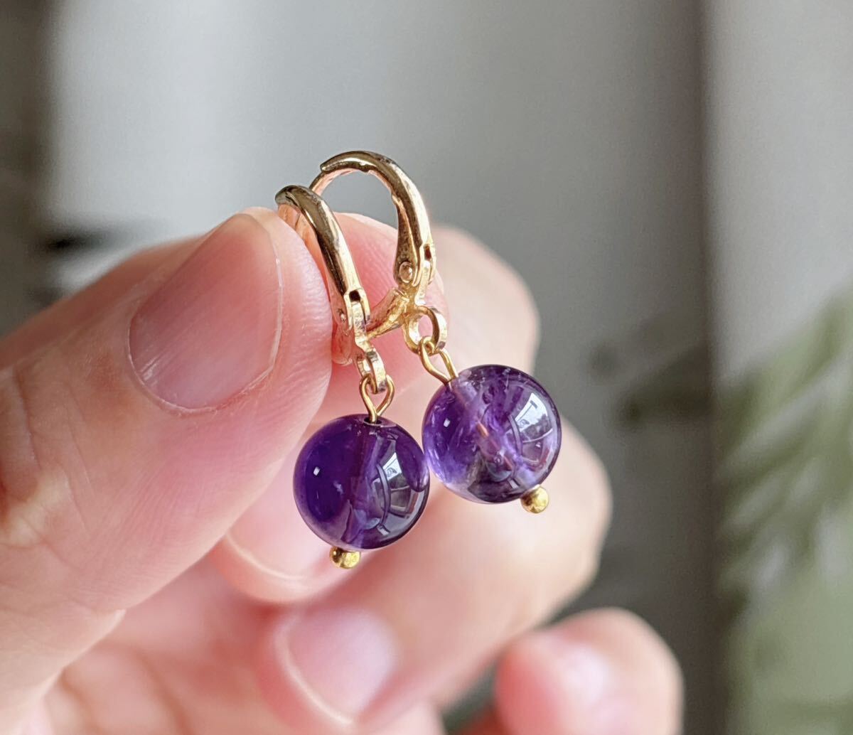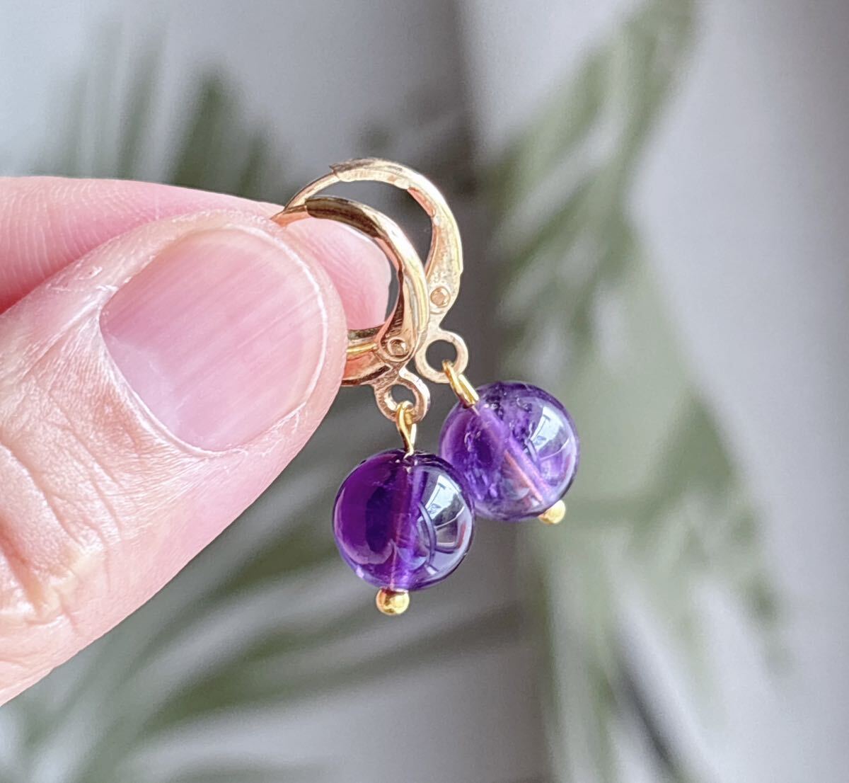 天然石 アメジスト(紫水晶)ピアスのサイズ約:直径8.8mm;