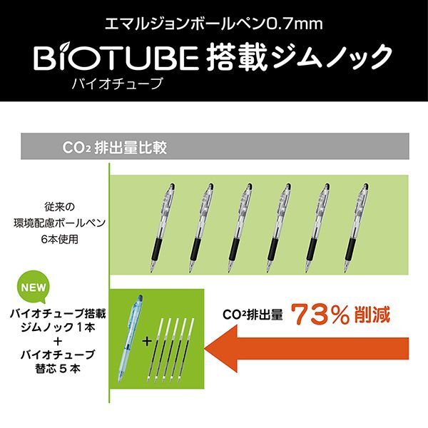 植物由来のバイオマスプラスチックを使用した替芯でCO2を73%削減。
