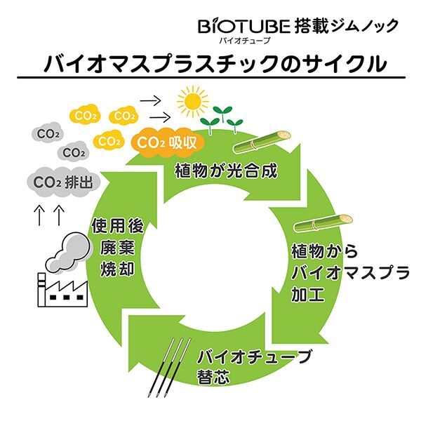 ・中芯チューブにサトウキビ由来のバイオマス樹脂を30%採用