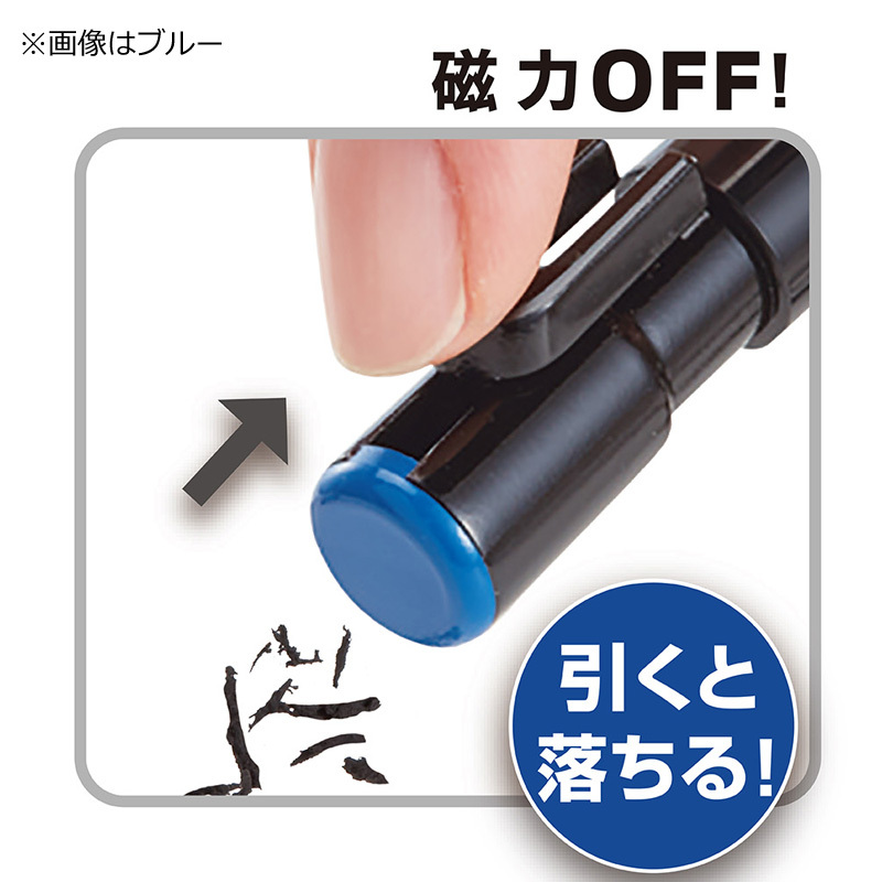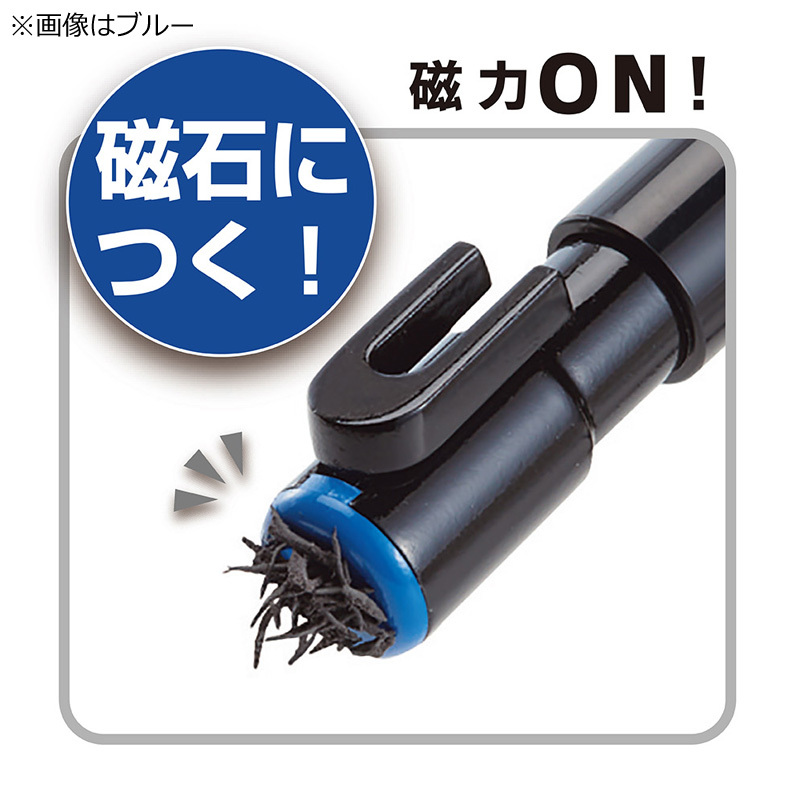 ペンキャップにネオジム磁石が内蔵してあり、消しクズを回収できます。