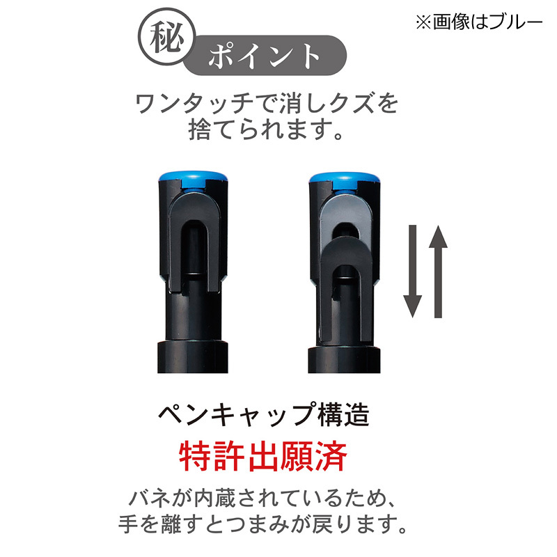 消しクズが磁石で集められ、ワンタッチでゴミ箱に捨てられます!