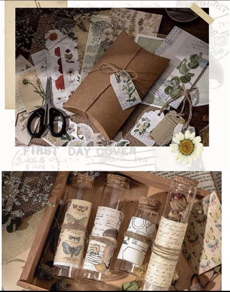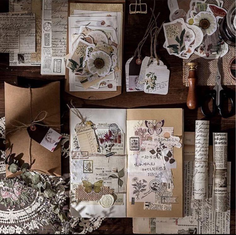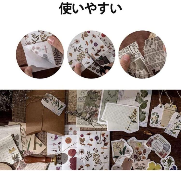 シールヴィンテージスクラップブックステッカーフレークシール手帳ステッカーコラージュ和紙ペーパーステッカー素材背景紙デザインペーパー装飾アンティークレトロナチスクラップブッキング用のヴィンテージフラワーイステッカースケジュール/手帳/ノート/アルバム/デコ/手紙/カレンダー/日記帳装飾用品