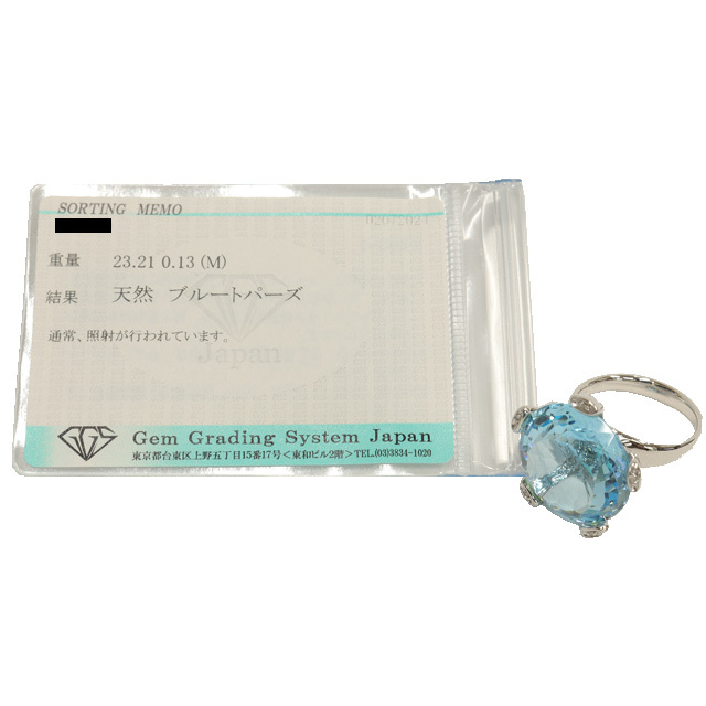 | 石目 | ブルートパーズ 23.21ct(打刻)/ ダイヤモンド 0.13ct(打刻) |