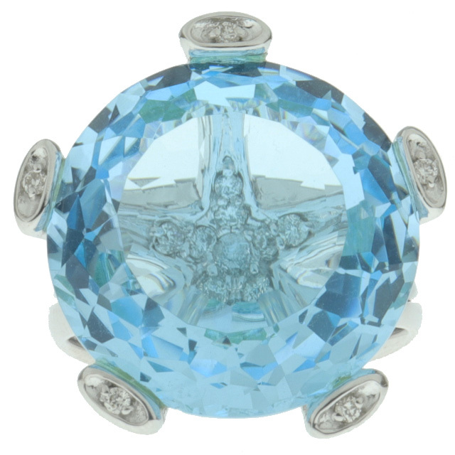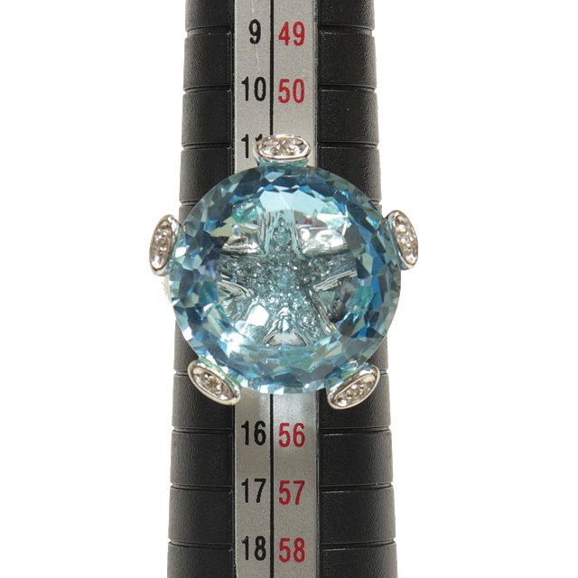 | サイズ | 約13.5号 ブルートパーズ 直径 約1.79cm / モチーフ最大幅 約2.08cm / 厚み 約1.16cm ※実寸で表記していますので多少の誤差はご了承ください |