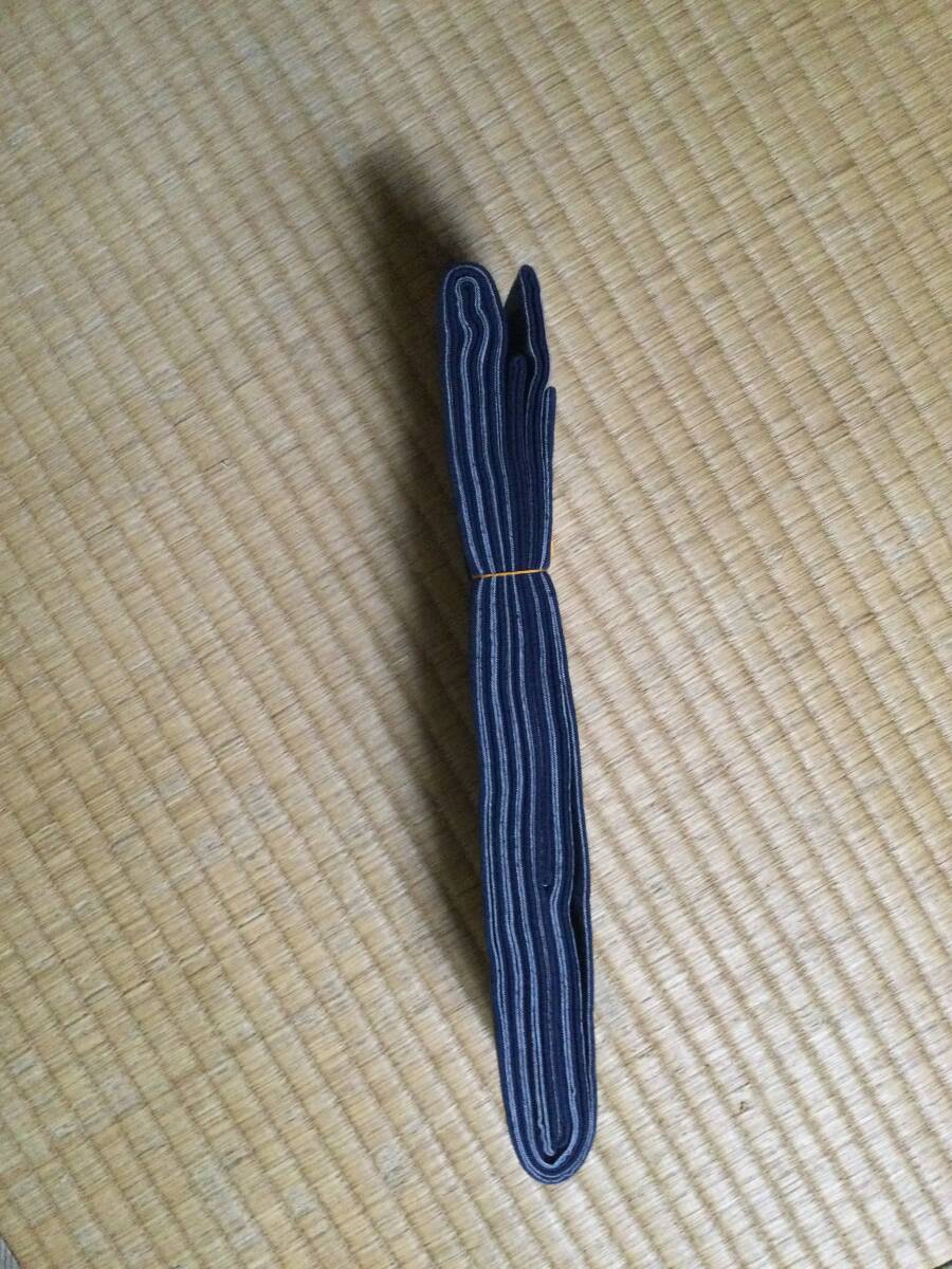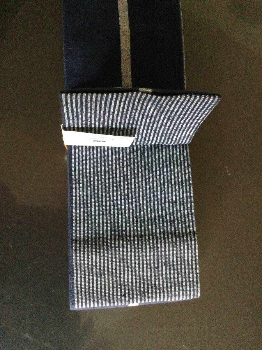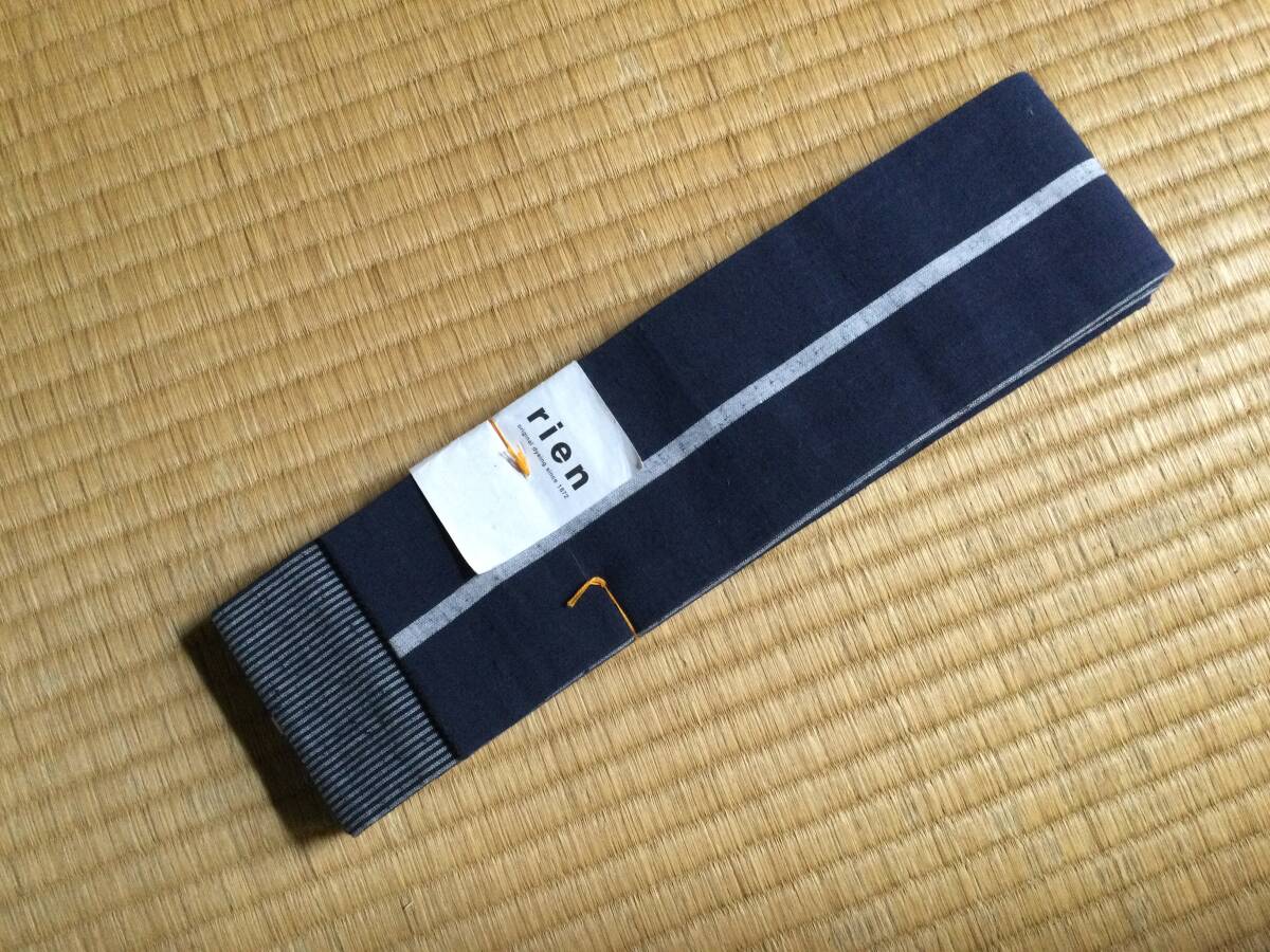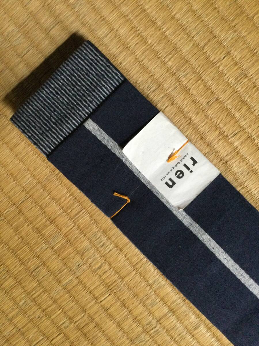 梨園 角帯紺地に白(アイボリー)裏地は粋な縞柄 綿