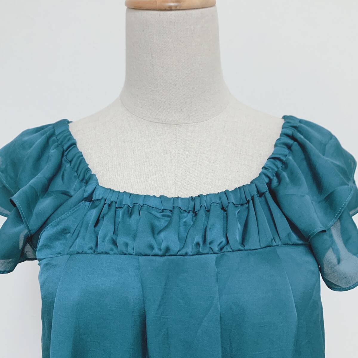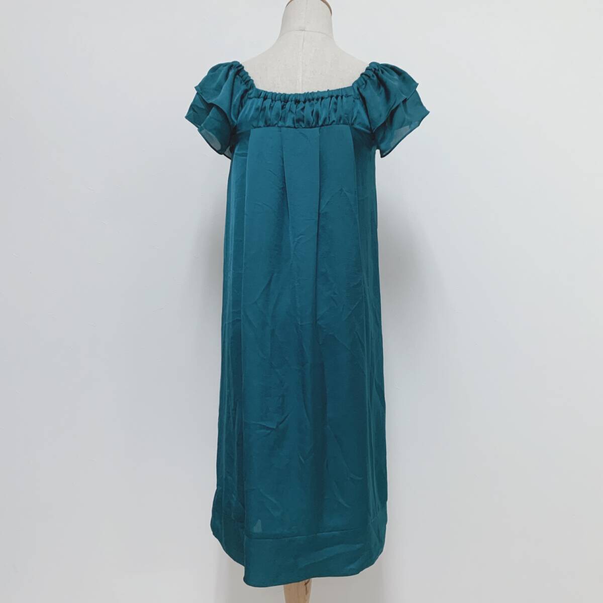 YH0893 Mirror Mirror ミラーミラー レディース オフショルダー ワンピース ひざ下丈 38サイズ ターコイズブルー 裏地あり 万能 USED 古着