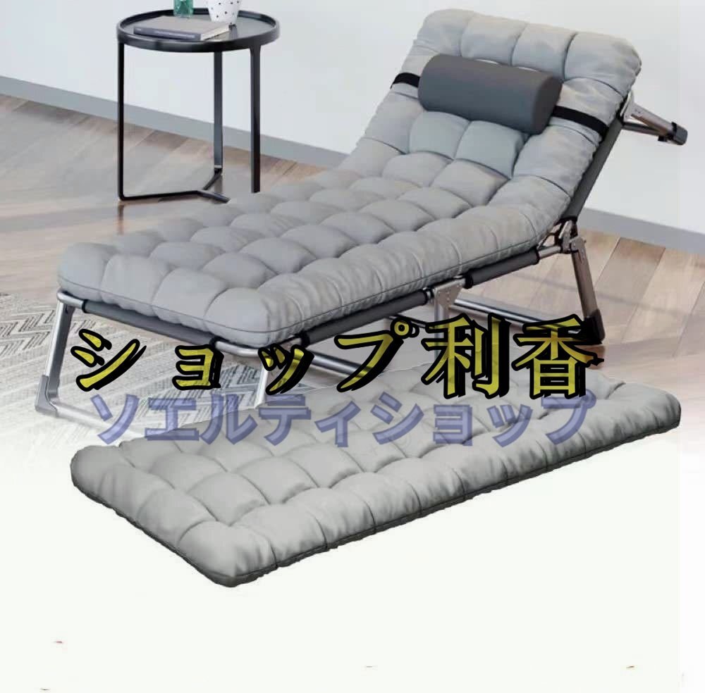 【安定性・もっと軽い】①折りたためばコンパクトに収納、使いやすさと小限の収納スペース、自由的にベッドと椅子へ変換できます。②太いスチールフレーム、しっかり支えて、安定感を増強し、高い耐久性も実現しました。寝心地の良いの折りたたみベッドです。人間工学に基づいたデザインで体にフィットして座り心地抜群。あえて適度なたわみを持たせて縫製しているため、体にフィットし長時間座っても疲れない構造になっています。