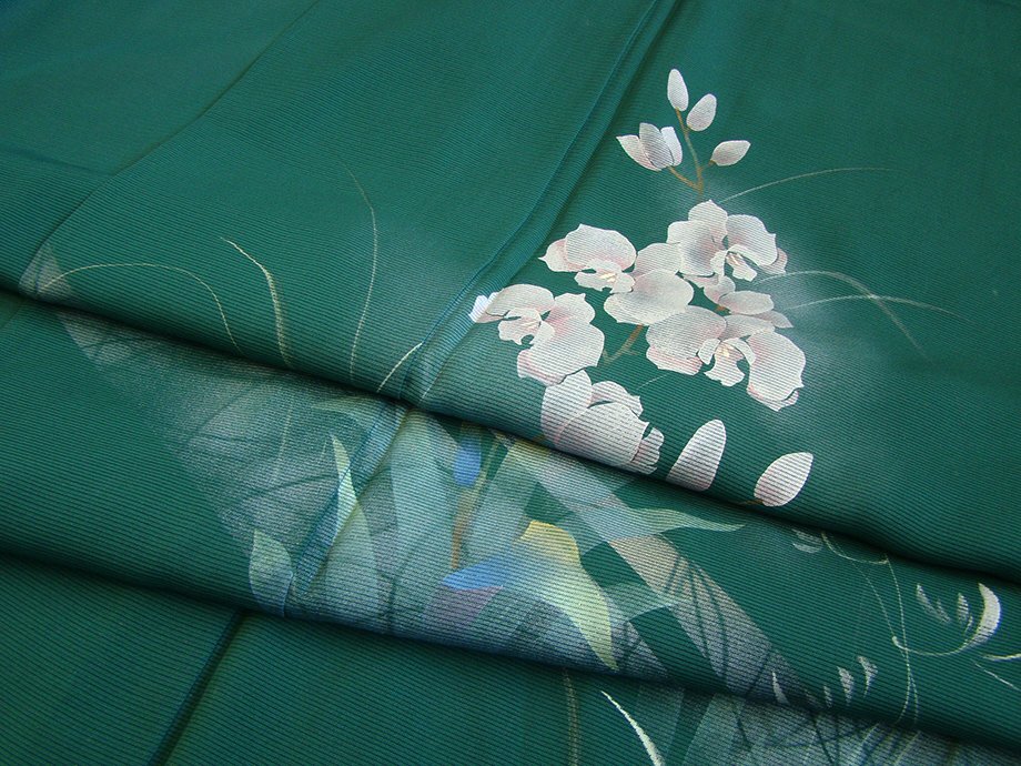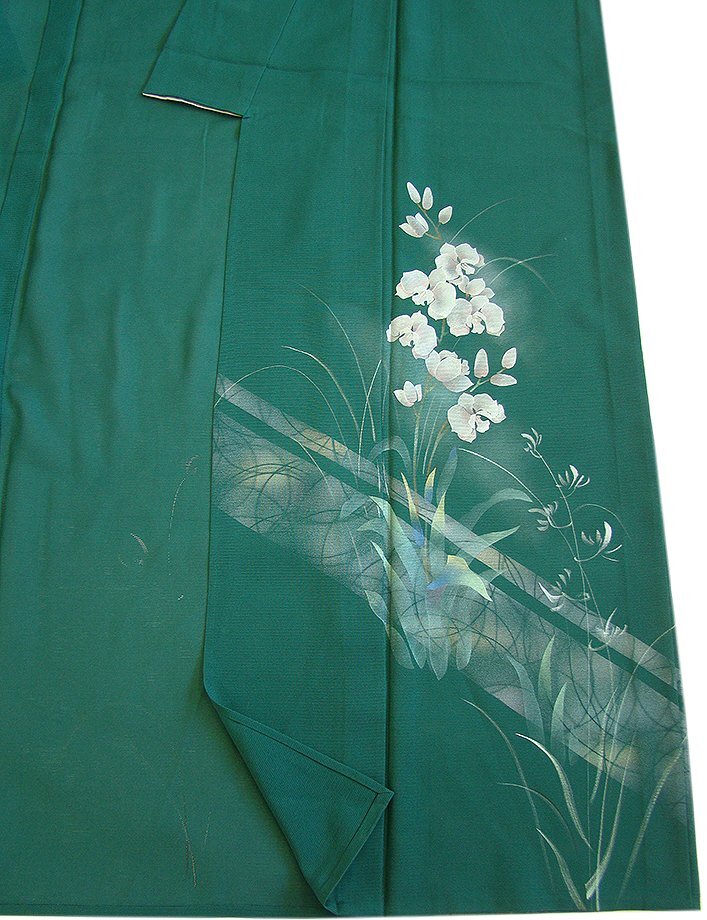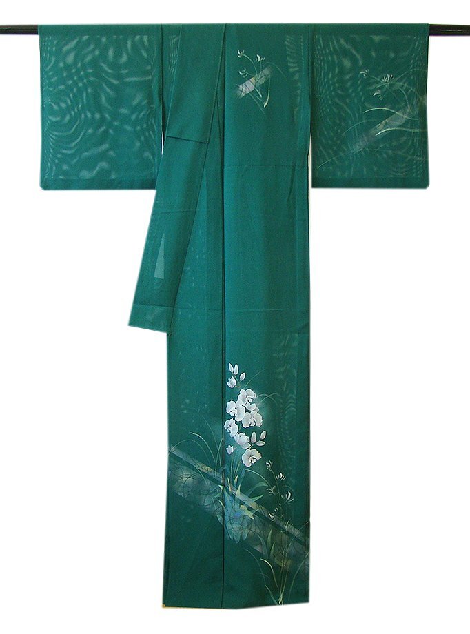 商品説明 | こちらのお品は夏物でございますので、7月~8月にお召頂ければと思います。 絽と言えば、紗と双璧を成す夏のお着物の生地で、その最大の魅力は絶妙の透かし加減です。 清涼感溢れる地の風を通すしなやかさは、夏に着物を着るという贅沢を 快適に楽しませてくれることでしょう。 着物には、大きく分けて「袷(あわせ)の着物」と「単衣(ひとえ)の着物」と「夏着物」があります。 反物(表地)を着物に仕立てるときに、裏地類をつけるものを袷の着物、 つけないものを単衣の着物と呼び、胴裏や八掛といった裏地がつかない一枚ものの着物です。 また裏地がないため、座る時などにヒップのラインが目立たないよう、 居敷当て(いしきあて)の生地をつけることもあります。 居敷当て付いておりません。 とてもしなやかなさらっとした肌触りが極上の着心地を誘う滑らかな「駒絽」の生地、 萌葱色地に草木柄の染柄に銀彩加工が上品な着物姿を演出しております。 着る人や見る人を清涼感に包み、女性の凛とした美しさを醸す様な、 洗練された印象を身に着けるお着物に仕上がっております。 |