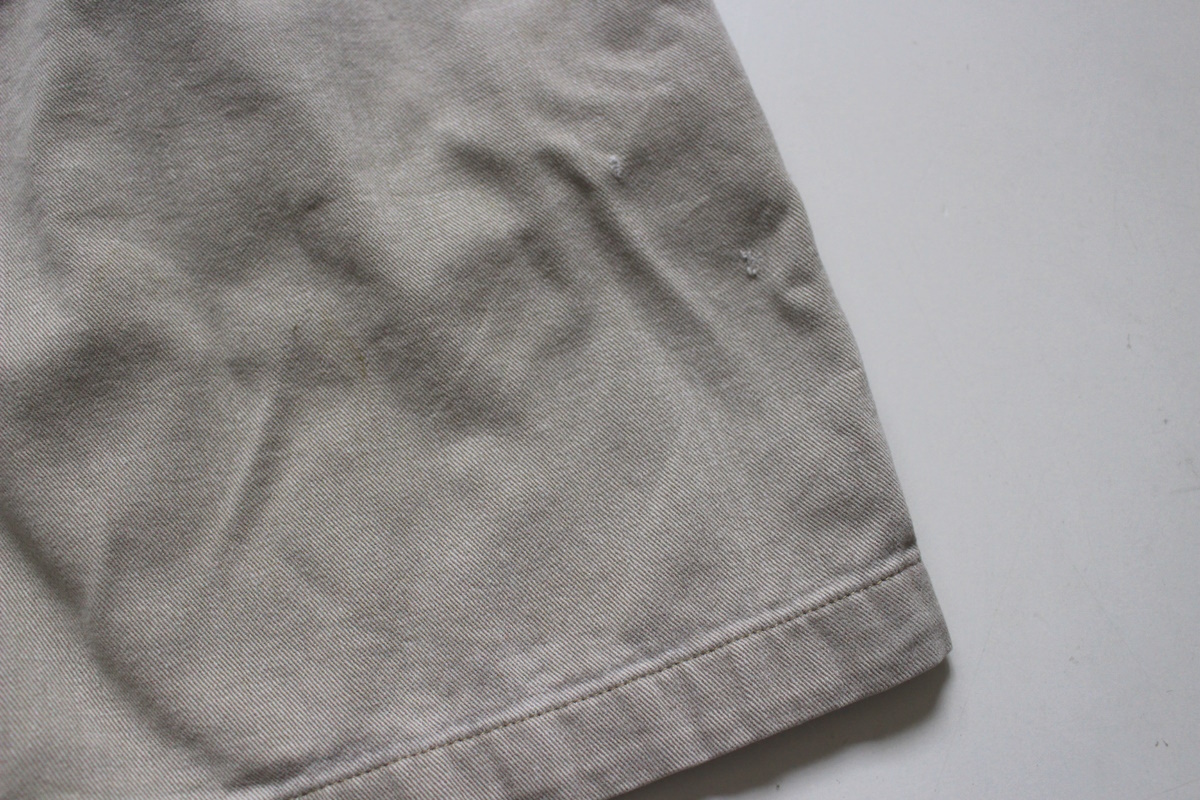 ブランド:last chance タグサイズ:M <実寸> 平置きウエスト:82㎝ 股上:29㎝ 股下:15.5㎝ 裾巾:30.5㎝ (誤差はご容赦ください) 素材:コットン100% カラー:ベージュ (主観記載) (モニター環境によりますが、実物カラーは画像①枚目をやや明るくした雰囲気です) 原産国:USA 【 商品の状態 】 画像③枚目:左ポケット下に多少ダメージがございます。 画像⑥枚目:後ろの尻付近に多少ダメージがございます。 また使用感はございますが、古着好きな方にはとても良い雰囲気になっているかと思います。 ダメージある古着慣れされた方へおすすめです。 【 商品の説明 】 last chance:ショートパンツ 90年代のvintage USA製 ポケット×③ 即決設定しておりますので、宜しければご検討下さい。 | |||||