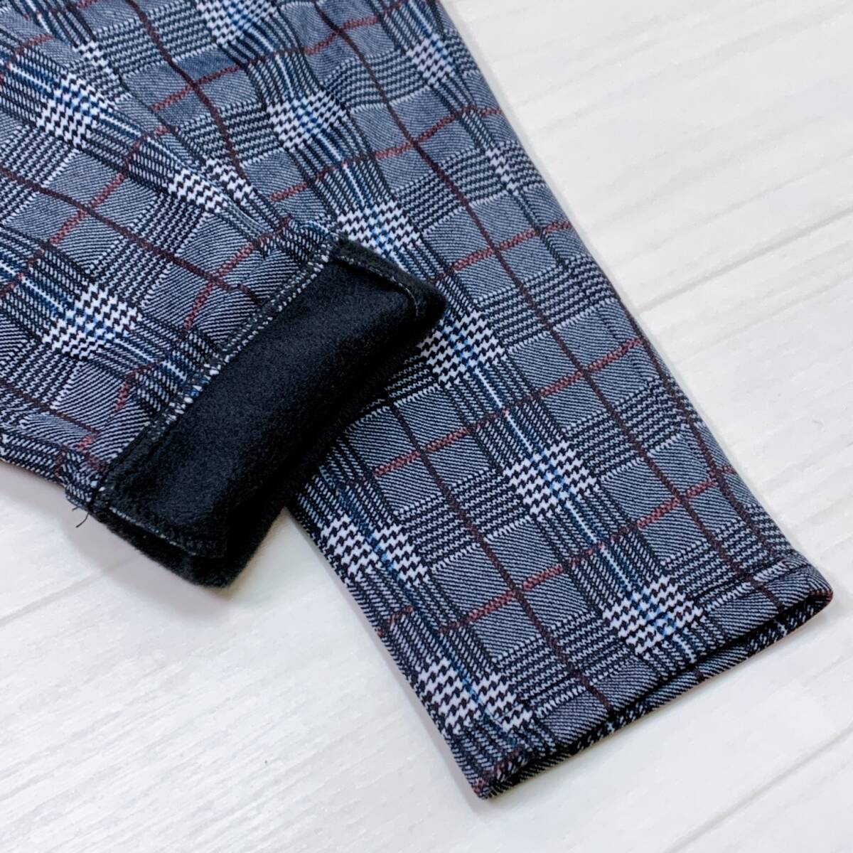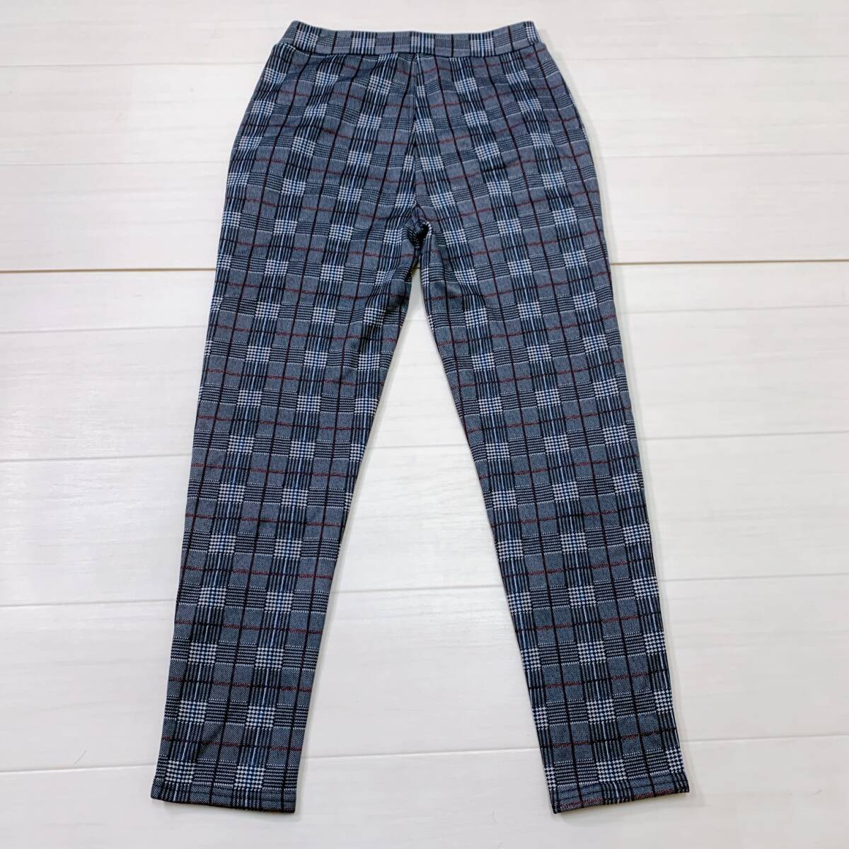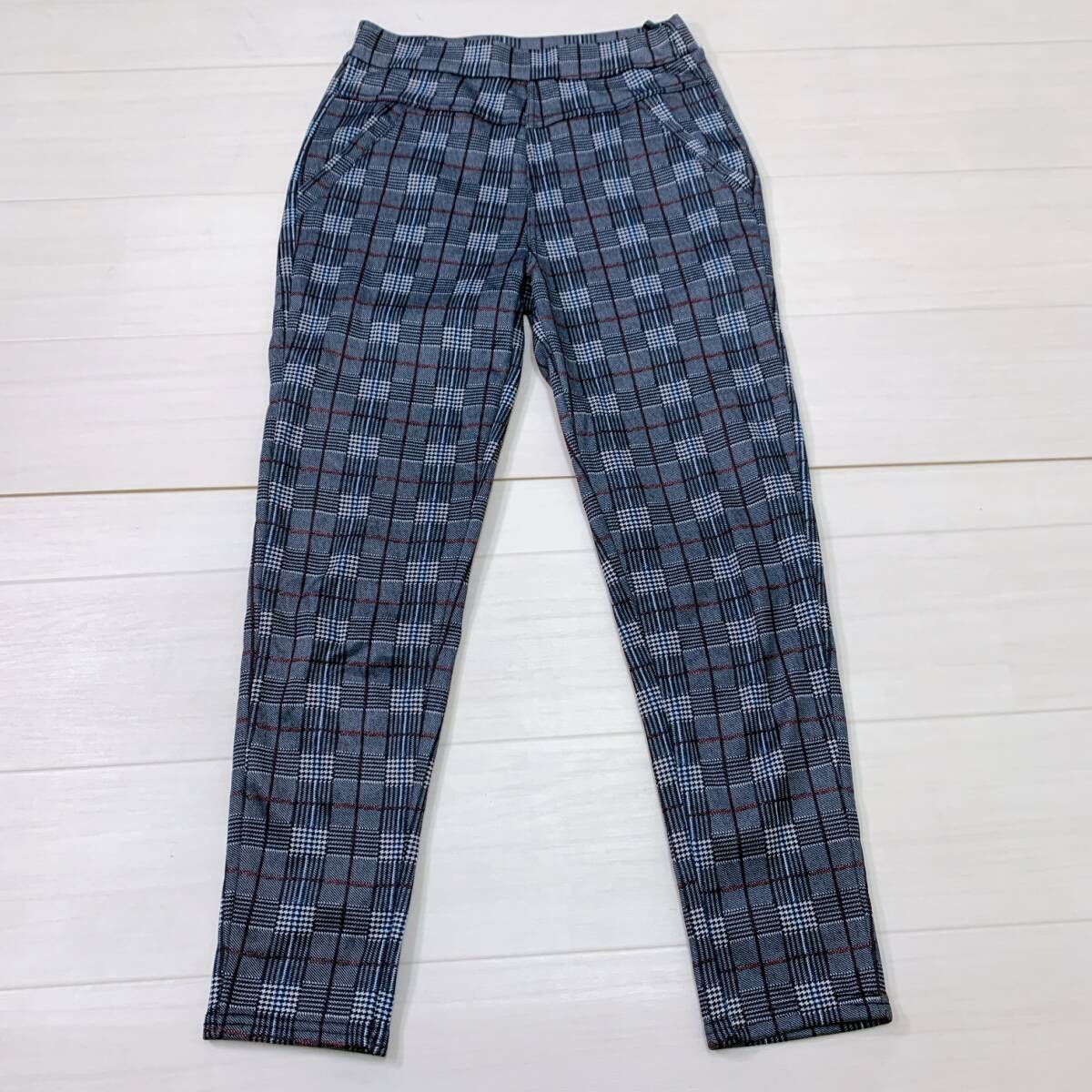 YH0841 レディース チェック柄 ストレッチパンツ スリム M~Lサイズ 裏起毛 グレー カジュアルスタイル シンプル あたたか 万能 USED 古着