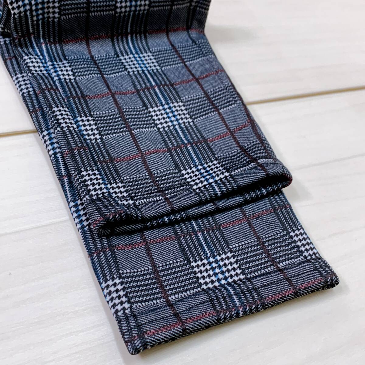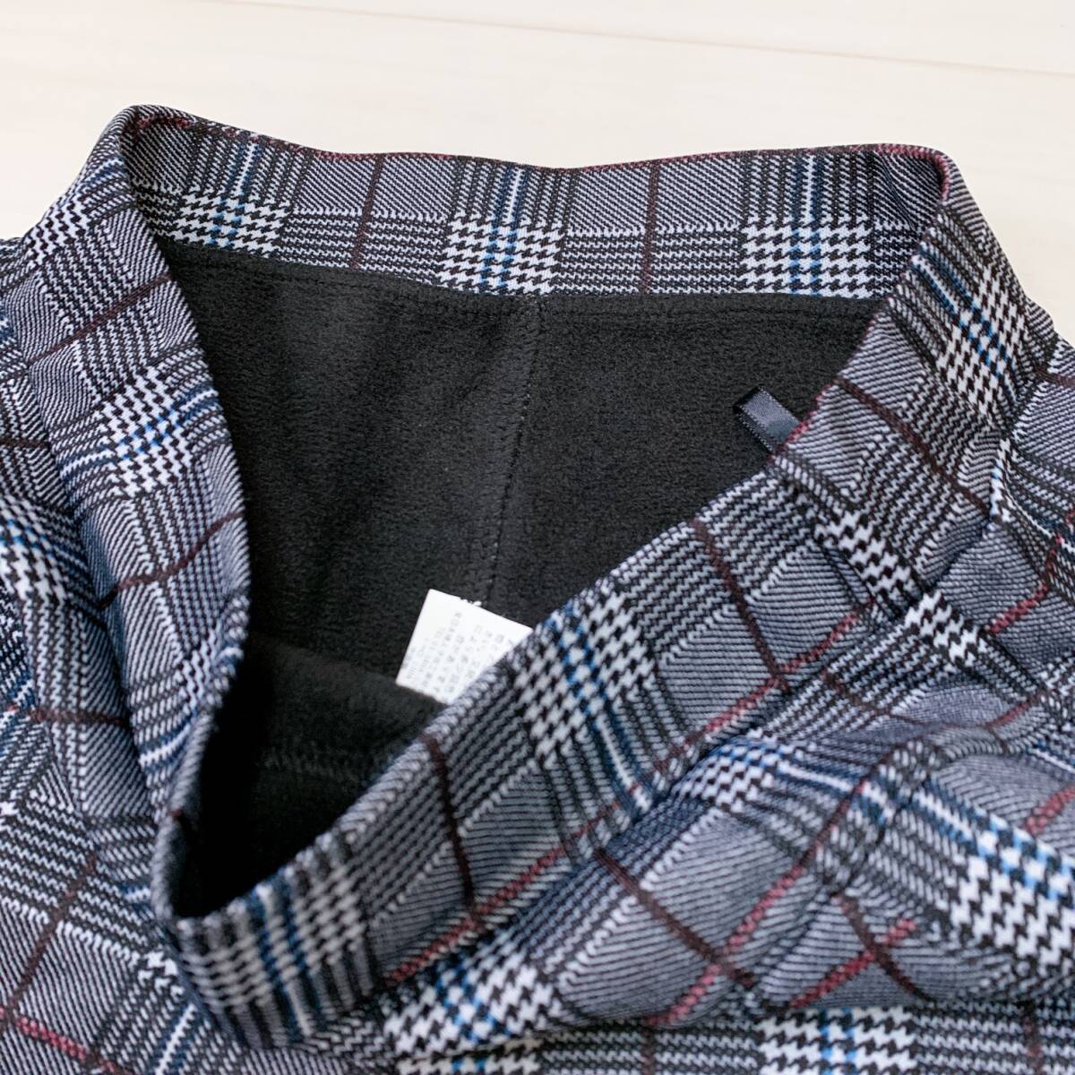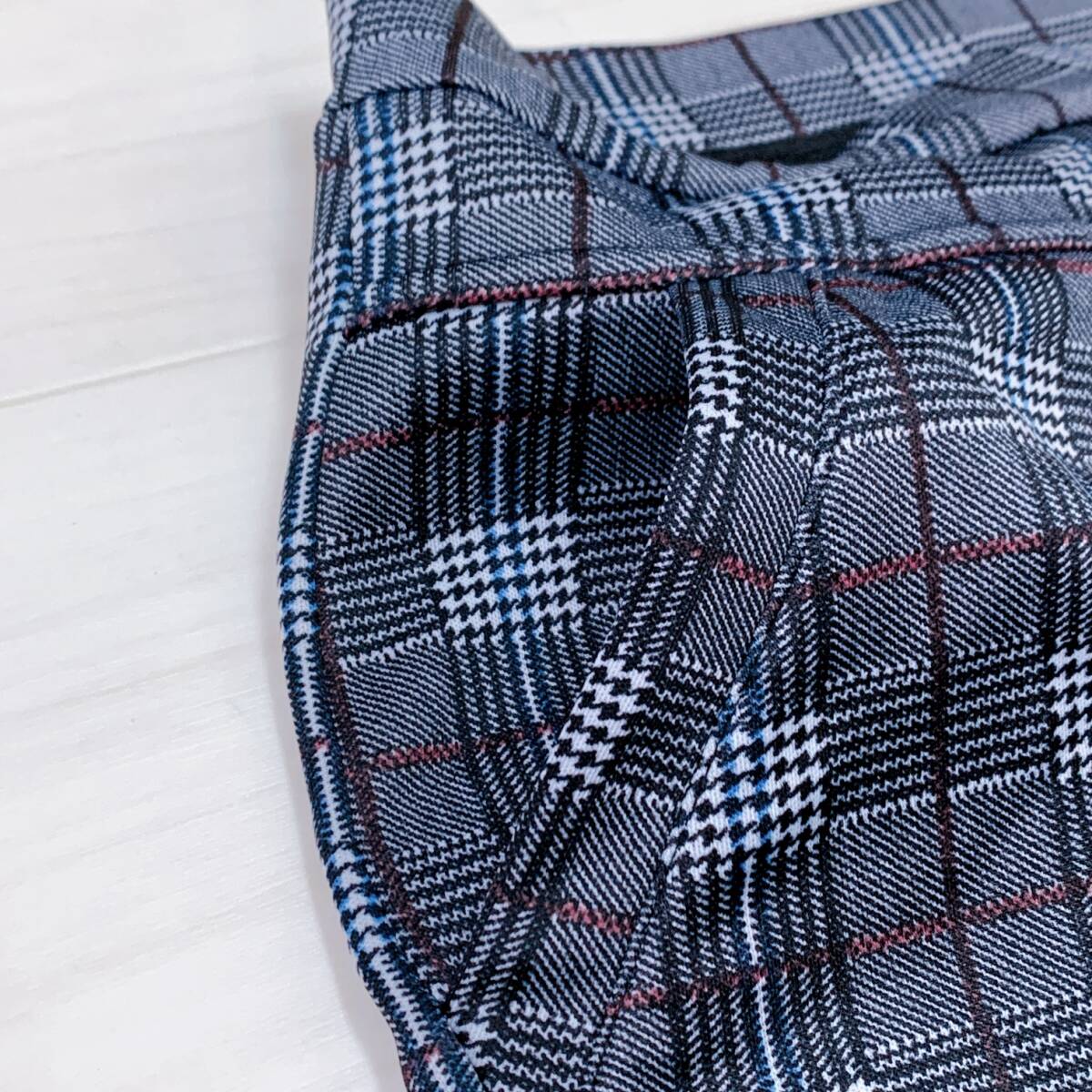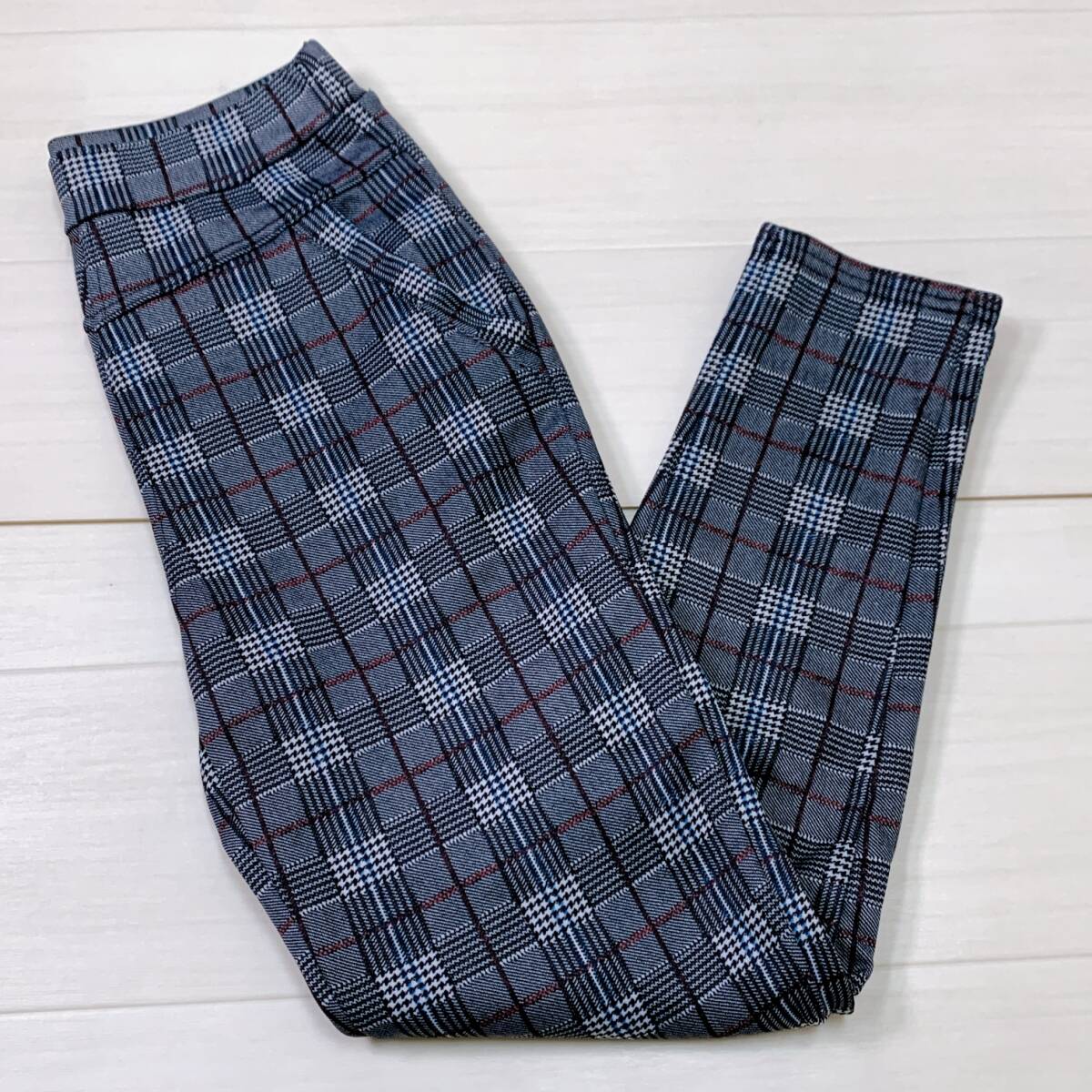 YH0841 レディース チェック柄 ストレッチパンツ スリム M~Lサイズ 裏起毛 グレー カジュアルスタイル シンプル あたたか 万能 USED 古着