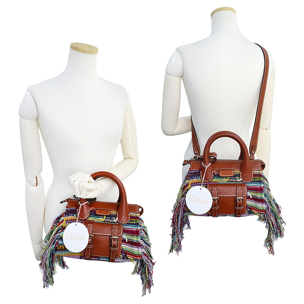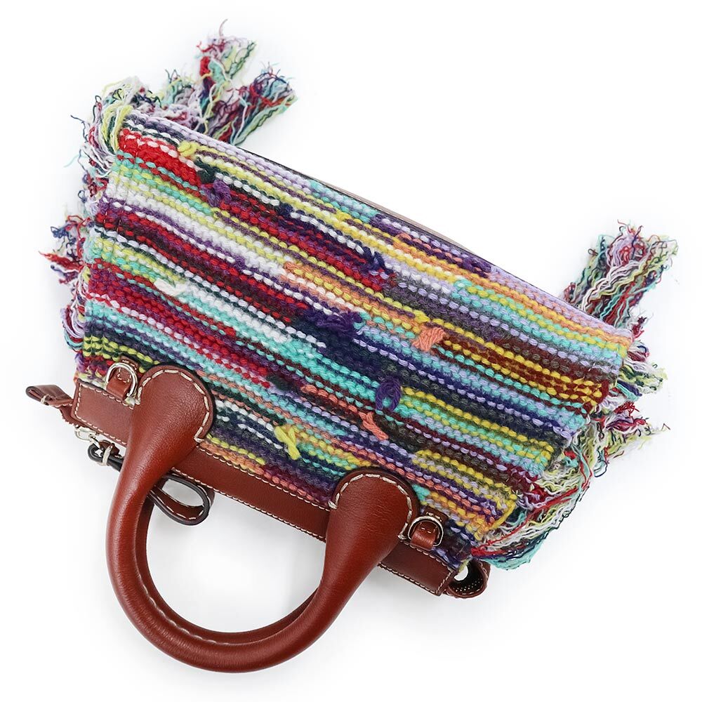 (新品・未使用品)クロエ Chloe レザー カシミヤ ウール Edith スモール フリンジ ショルダー ハンドバッグ マルチカラー 茶 CHC22SS451