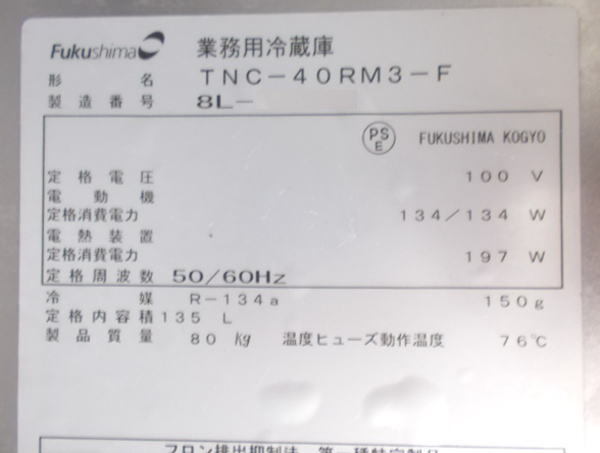 フクシマ 低コールドテーブル TNC-40RM3-F 1200×600×600 中古厨房/24F2601Z