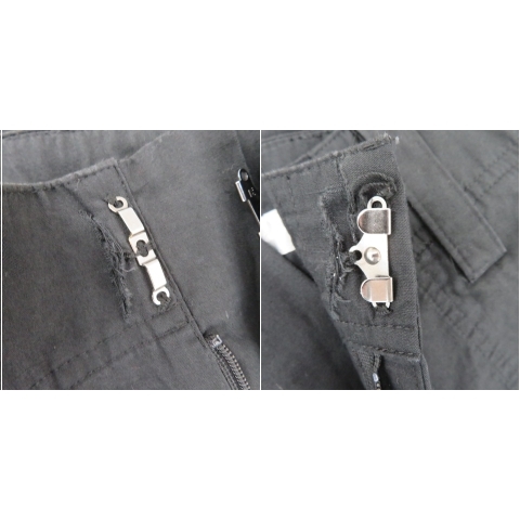 【仕様】ホック+ファスナー 裏地なし 前ポケット×2 後ろポケット×2 サイドポケット×2