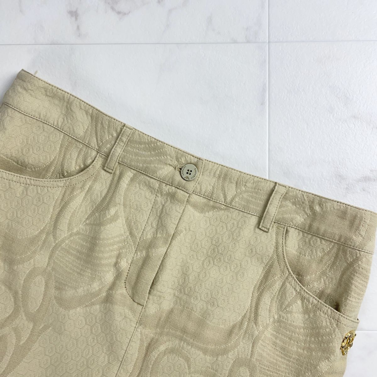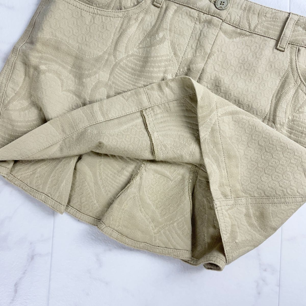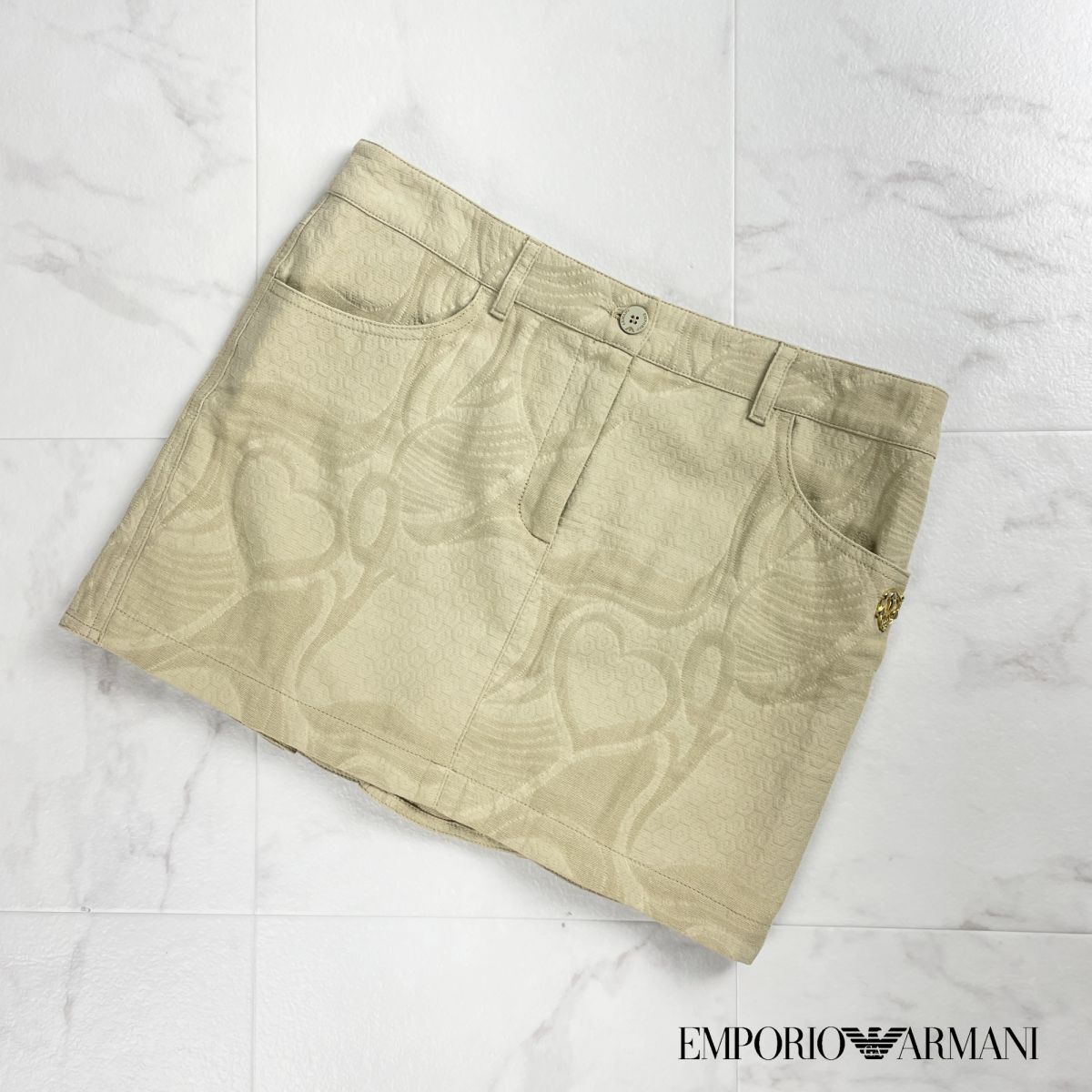 美品 EMPORIO ARMANI エンポリオアルマーニ ハート柄 刺繍 バックフリルスカート ミニ丈 裏地無し ベージュ サイズXS*QC969