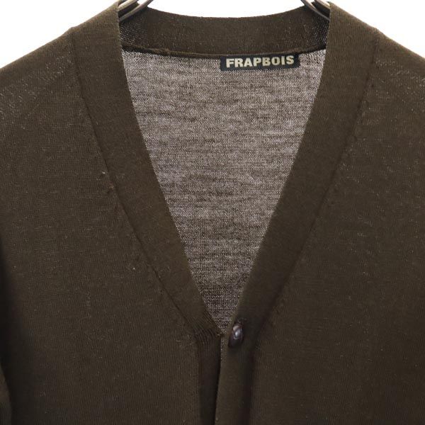 詳細 | FRAPBOISの長袖ニットカーディガンです。男女どちらでもご着用いただけます。実寸を参考にしてください。内タグが薄くなり見づらくなっており、薄いシミ汚れがあります。脇に少しほつれと、ポケットの止め紐がとれてきています。他、特に気になるようなダメージはございません。 |