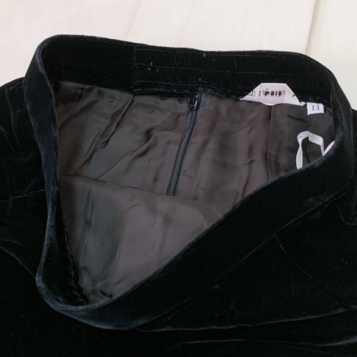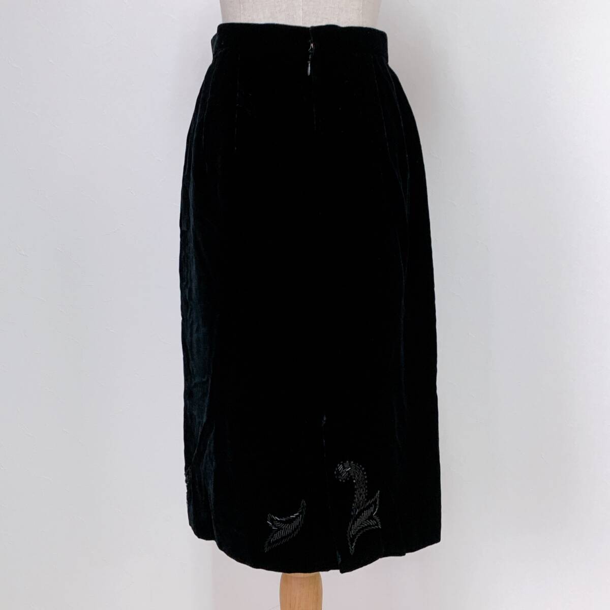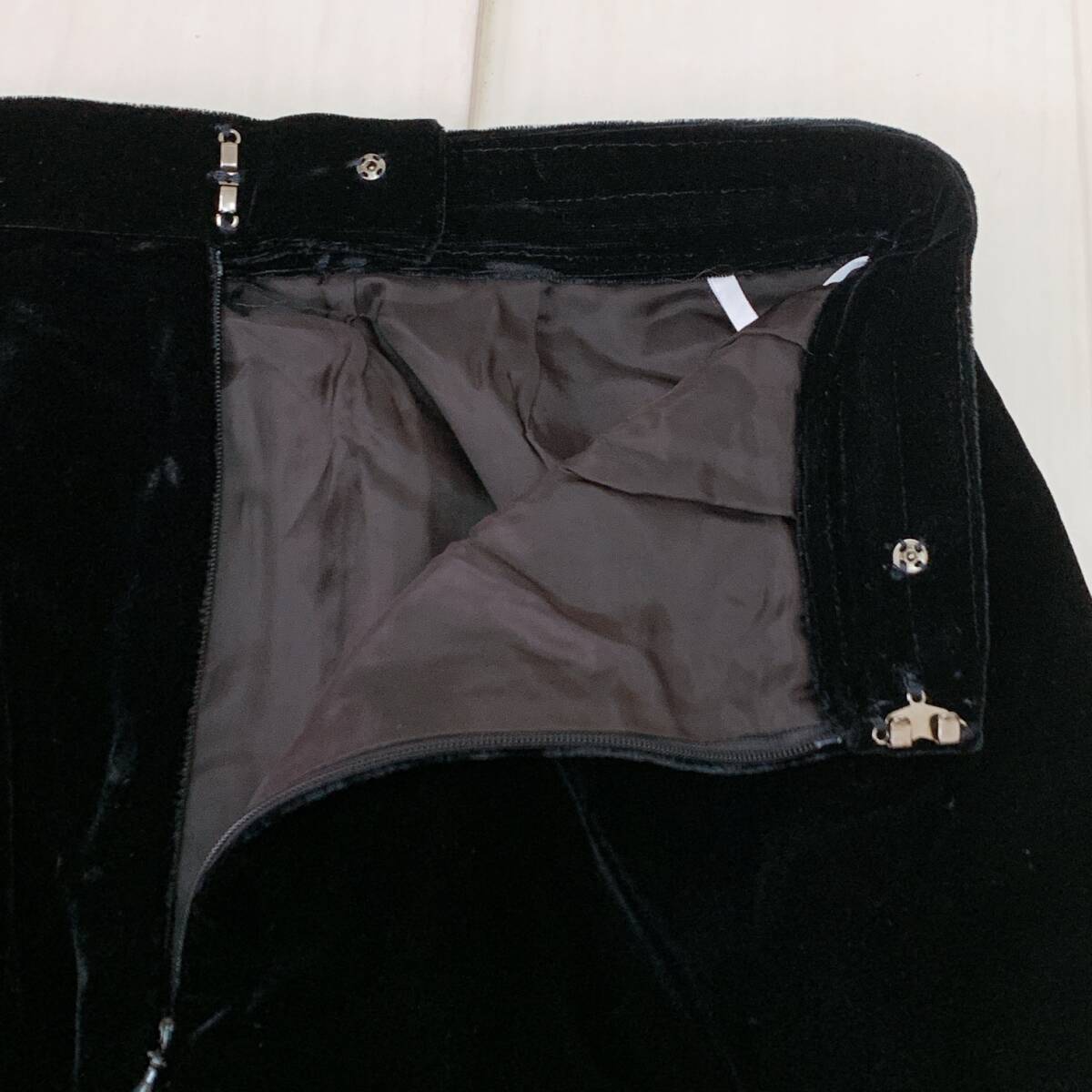 YH0858 glacon-R レディース ベロア調 ひざ下丈 スカート スリット ブラック 黒 11号 ビジュー 裏地あり 上品 お洒落 万能 USED 古着