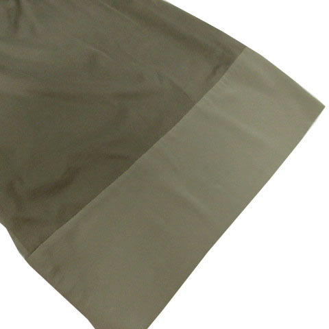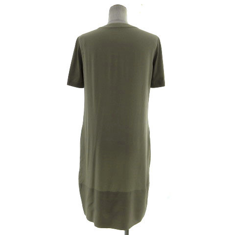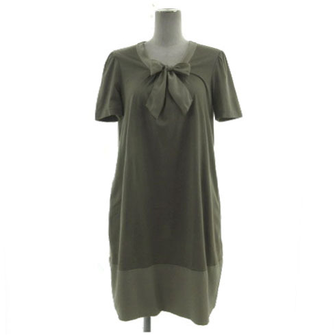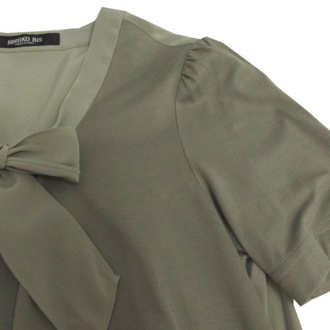 ヒロコビス HIROKO BIS ワンピース ボウタイ リボン 半袖 ミディ丈 切替え シルク混 カーキ 9 レディース