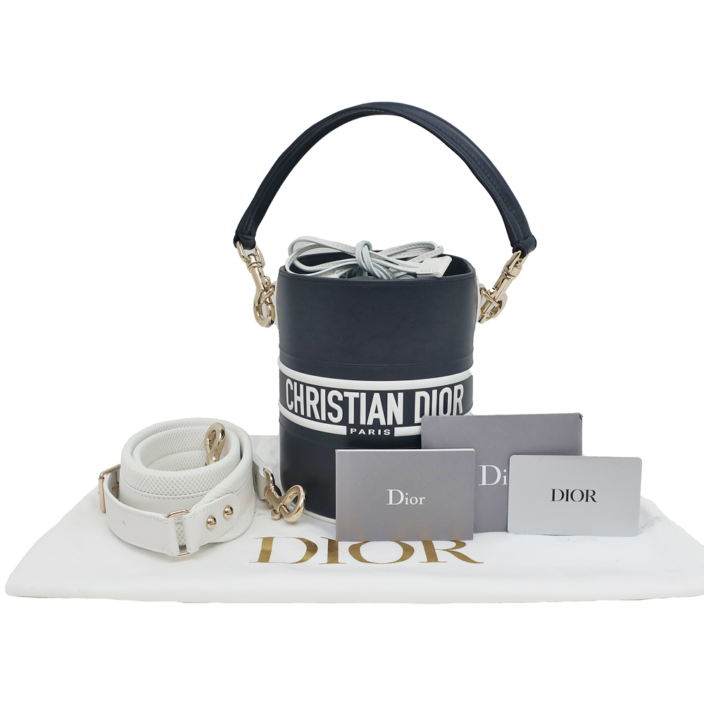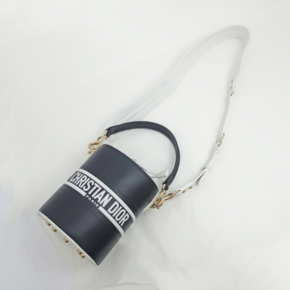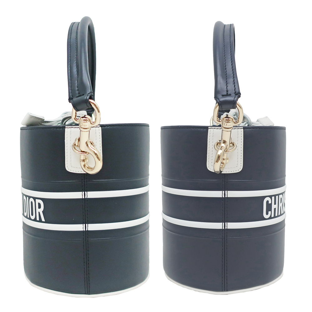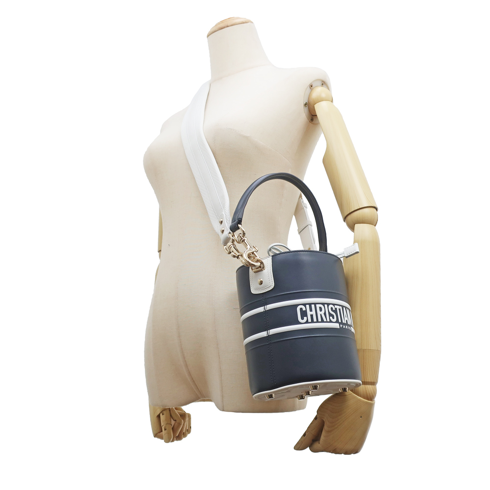 【名東】ディオール ヴァイブ バケット オブリーク ハンドバッグ ショルダー ネイビー 紺 白 ホワイト レディース