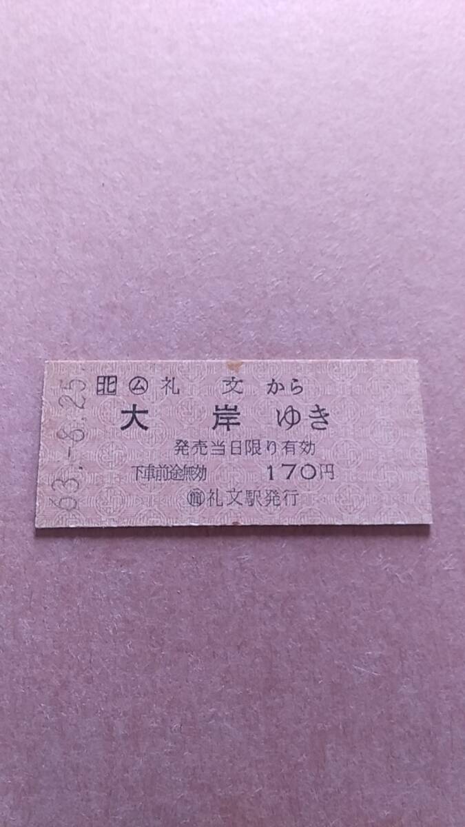 JR北海道 室蘭本線 (ム)礼文から大岸ゆき 170円 (簡)礼文駅発行