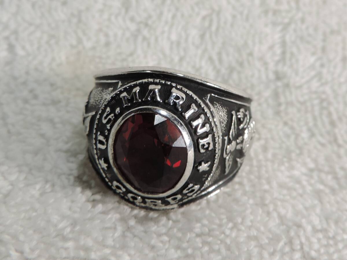 【質問欄より値下げ交渉可】ヴィンテージ リング・メンズ指輪・美品・14KTGE刻印有り・赤宝石付き(12x10ミリ)・25.5号・約16.50g USMARINE
