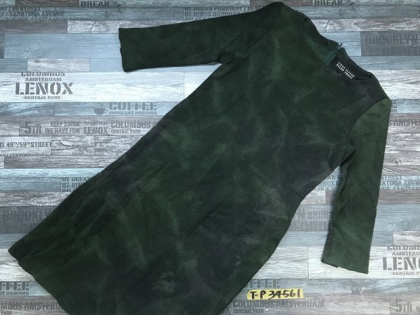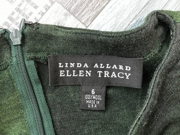 LINDA ALLARD ELLEN TRACY レディース タイダイ風 USA 肩パッド ウール 七分袖ワンピース 6 グリーン です。