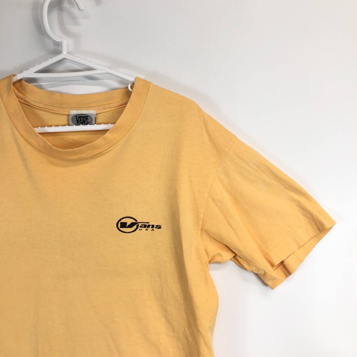 90s USA製 VANS バンズ 半袖Tシャツ Mサイズ 薄いオレンジ シングルステッチの出品です。